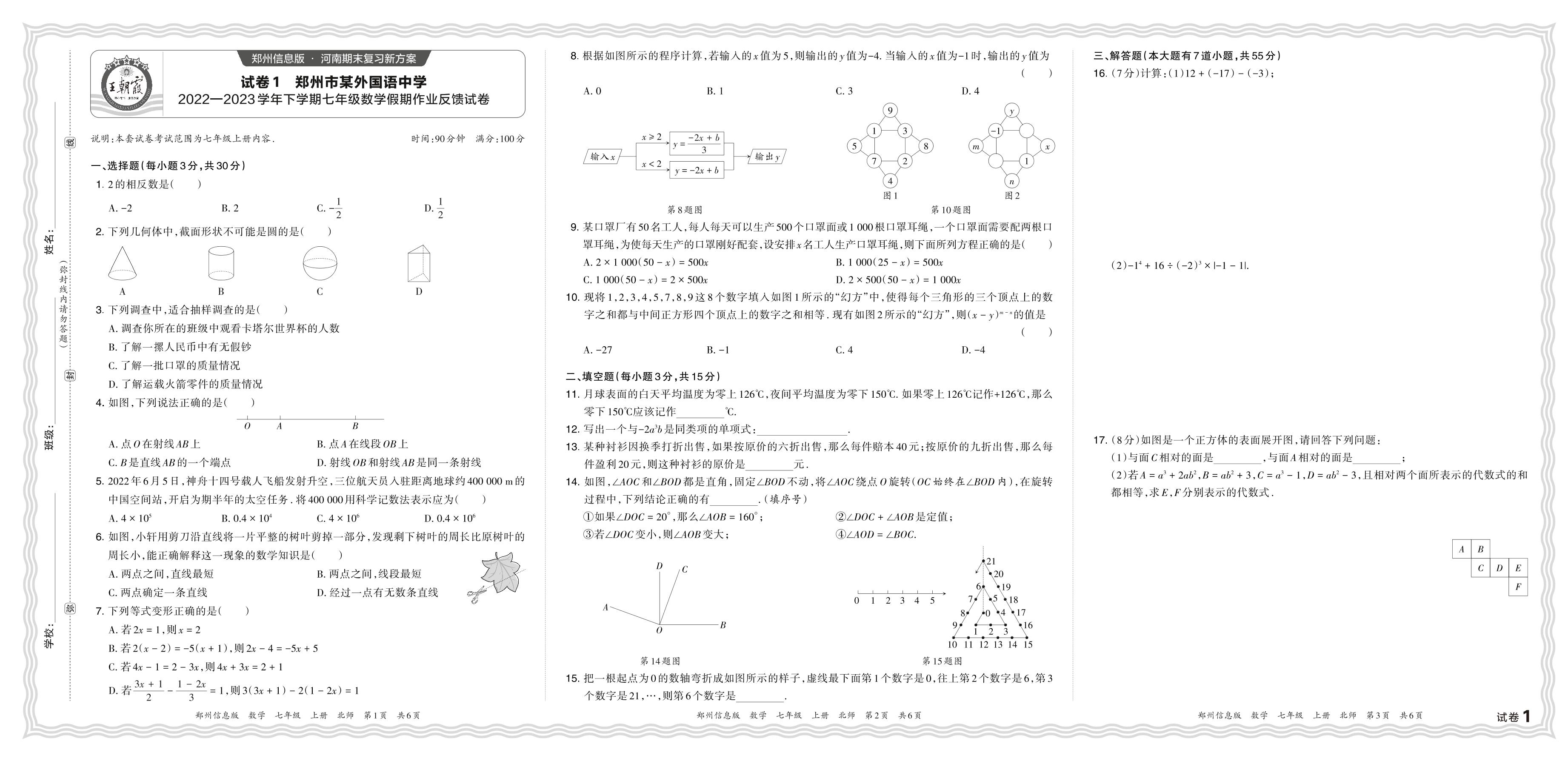 河南省郑州市某外国语中学2022-2023学年下学期七年级数学假期作业反馈试卷(北师版)【1】