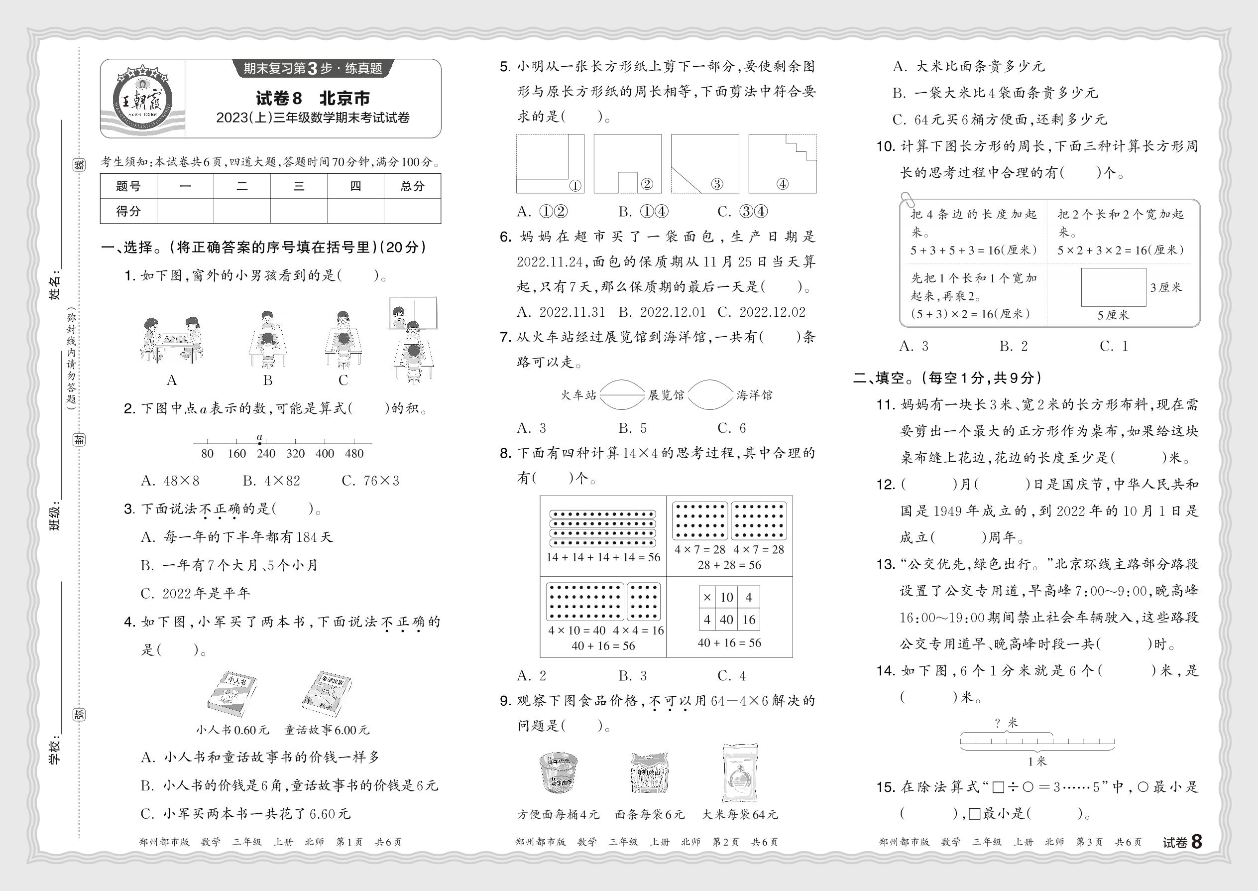 北京市2022—2023学年第一学期三年级数学期末考试试卷(北师版)【8】