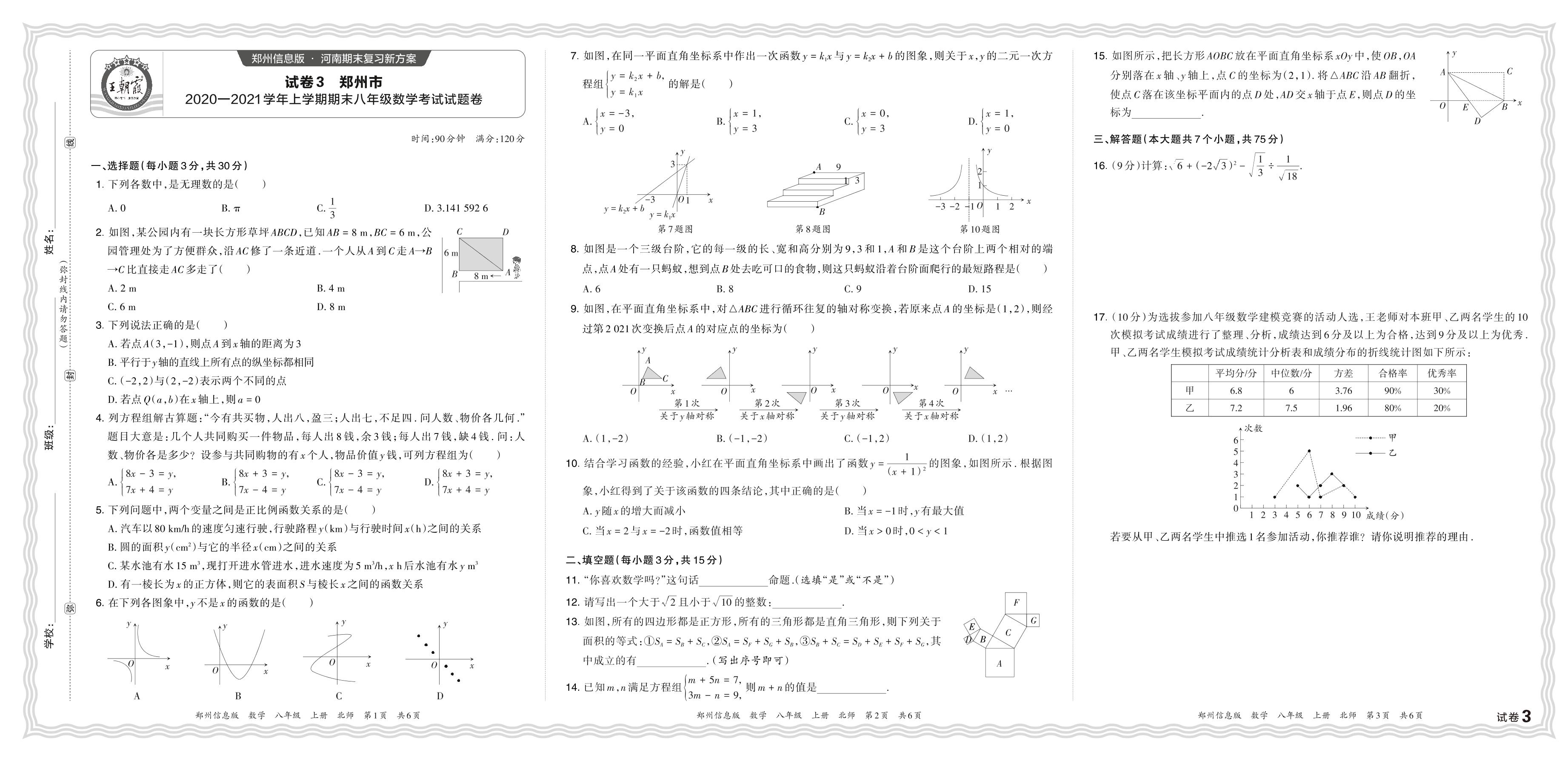 河南省郑州市2020—2021学年上学期期末八年级数学考试试题卷(北师版)【3】