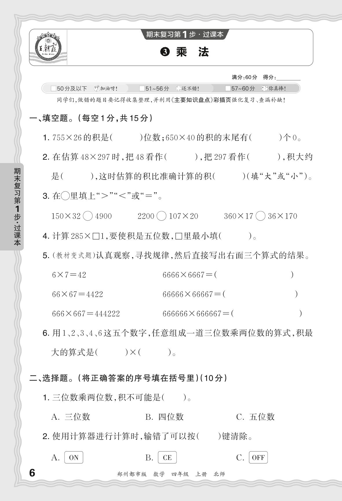 2023秋上册四年级数学北师版 期末过课本QMB版·乘法【3】