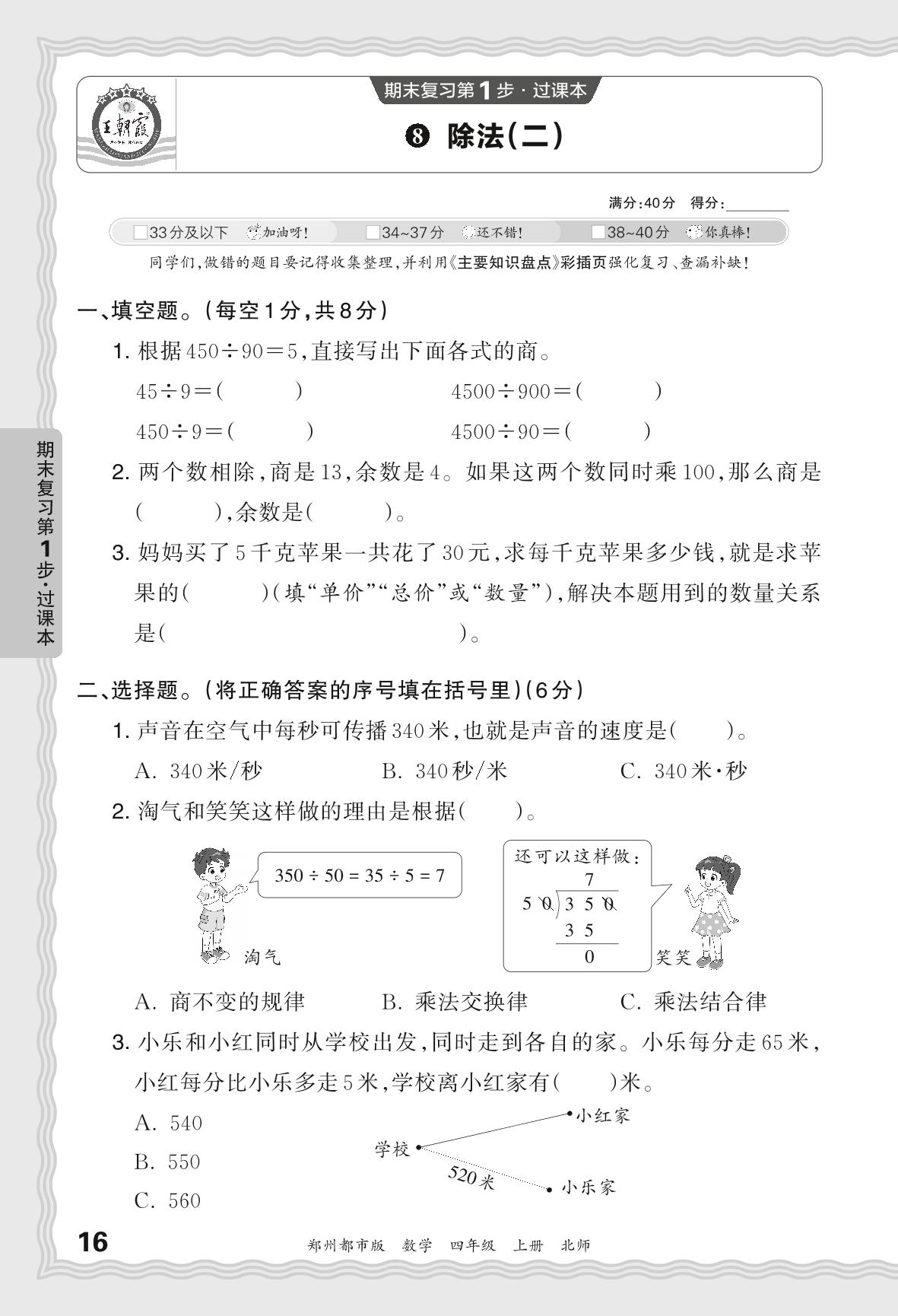 2023秋上册四年级数学北师版 期末过课本QMB版·除法(二)【8】