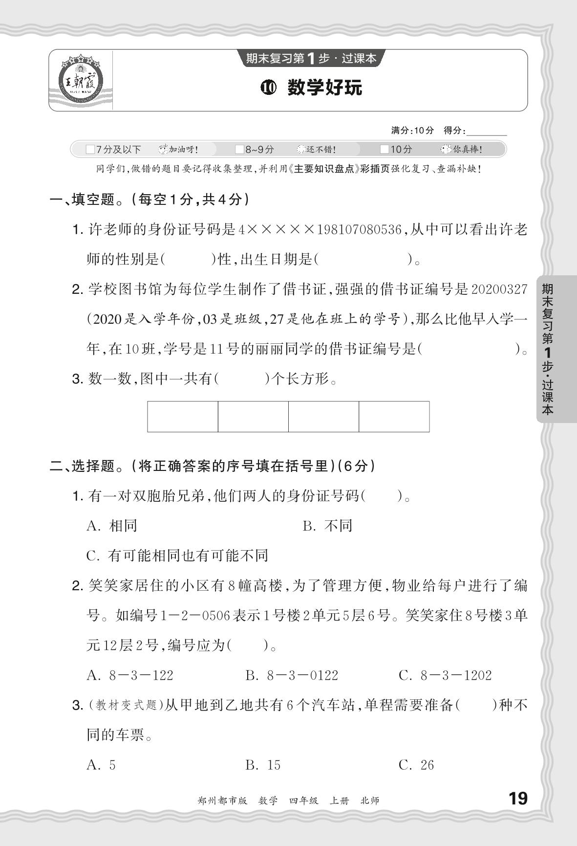 2023秋上册四年级数学北师版 期末过课本QMB版·数学好玩【10】