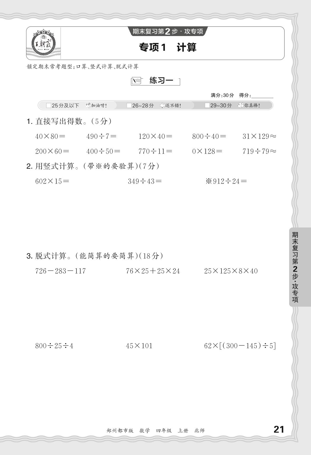 2023秋上册四年级数学北师版 期末专项卷·计算_R231128104924149【1】