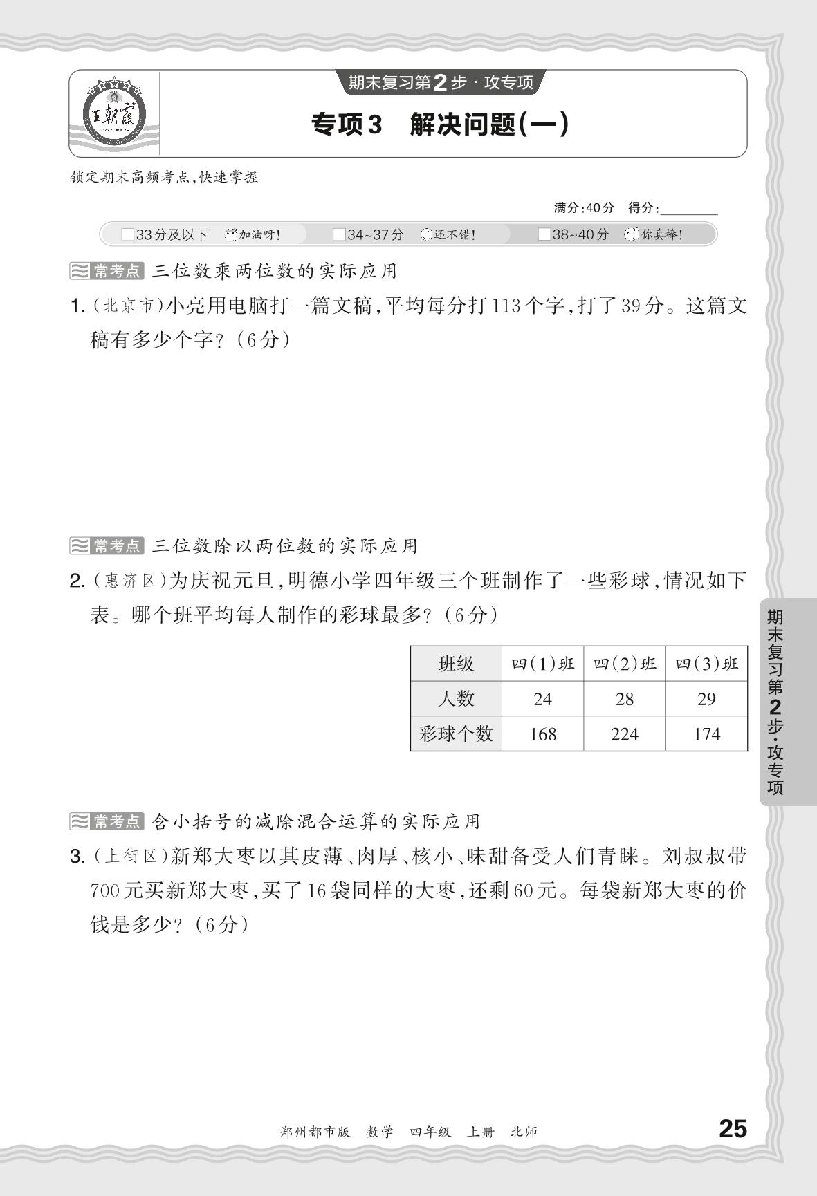 2023秋上册四年级数学北师版 期末专项卷·解决问题(一)_R231128104925754【3】