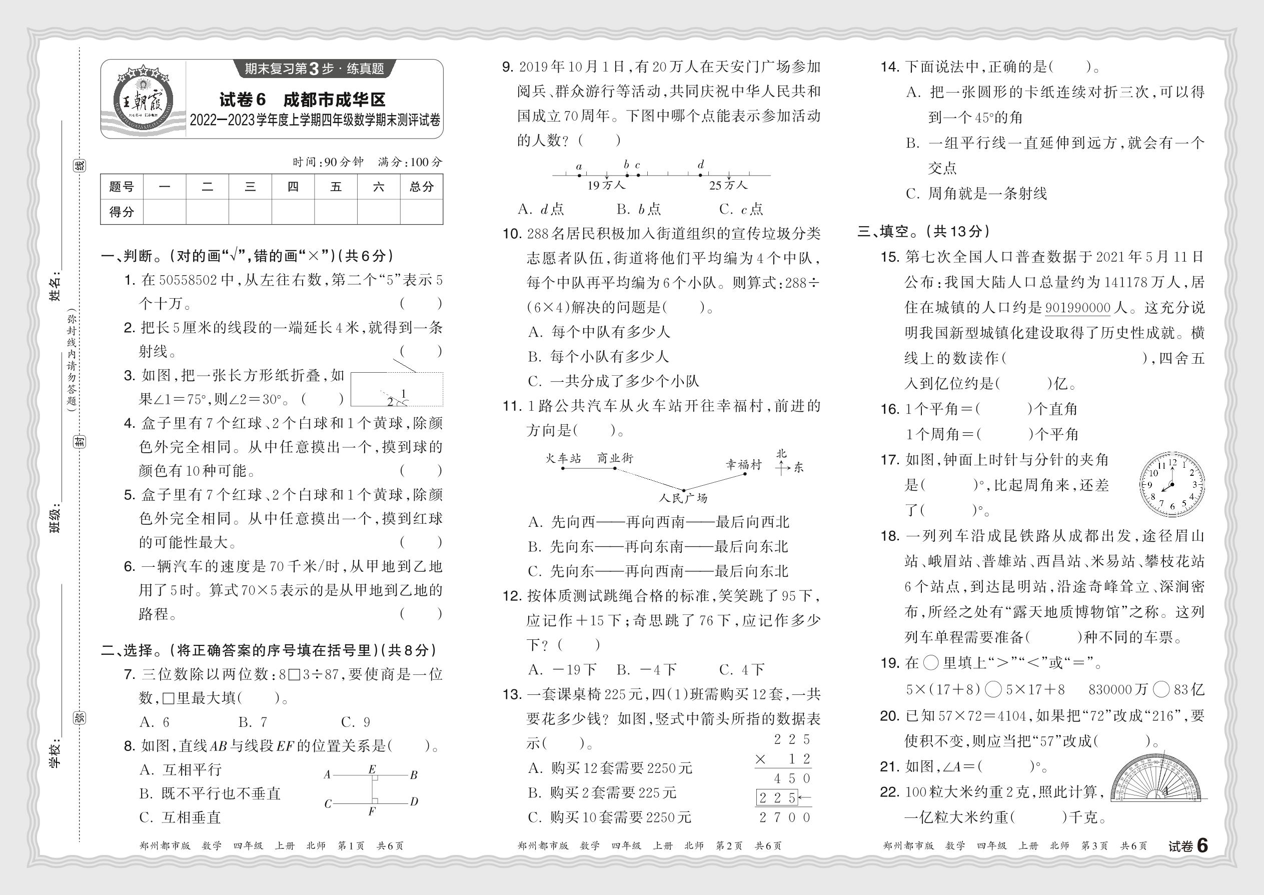 四川省成都市成华区2022—2023学年第一学期四年级数学期末测评试卷(北师版)【6】