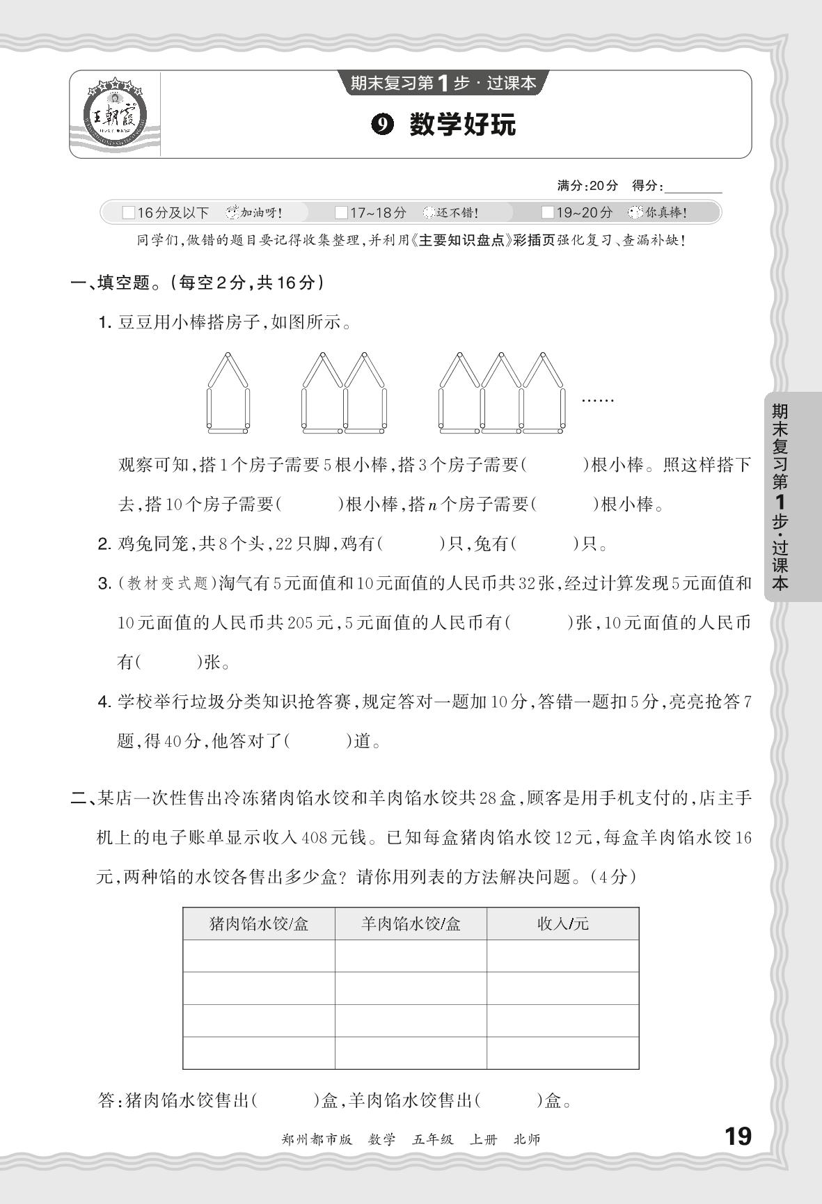 2023秋上册五年级数学北师版 期末过课本QMB版·数学好玩【9】