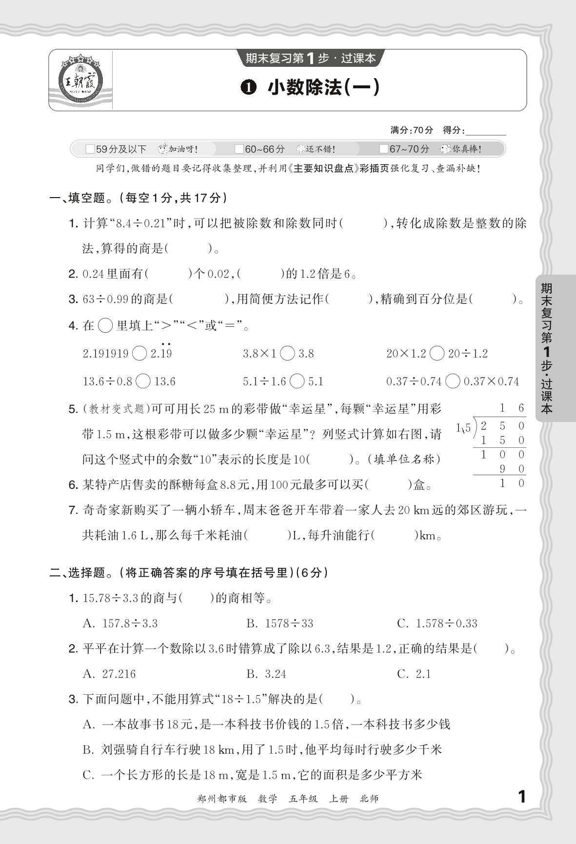 2023秋上册五年级数学北师版 期末过课本QMB版·小数除法(一)【1】