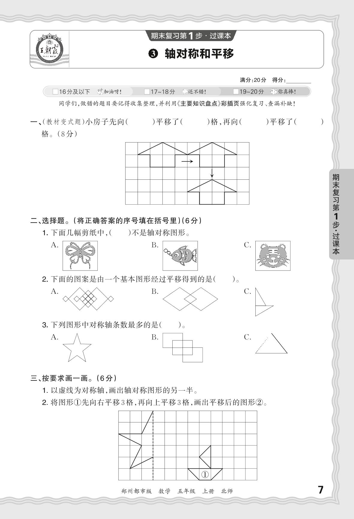 2023秋上册五年级数学北师版 期末过课本QMB版·轴对称和平移【3】