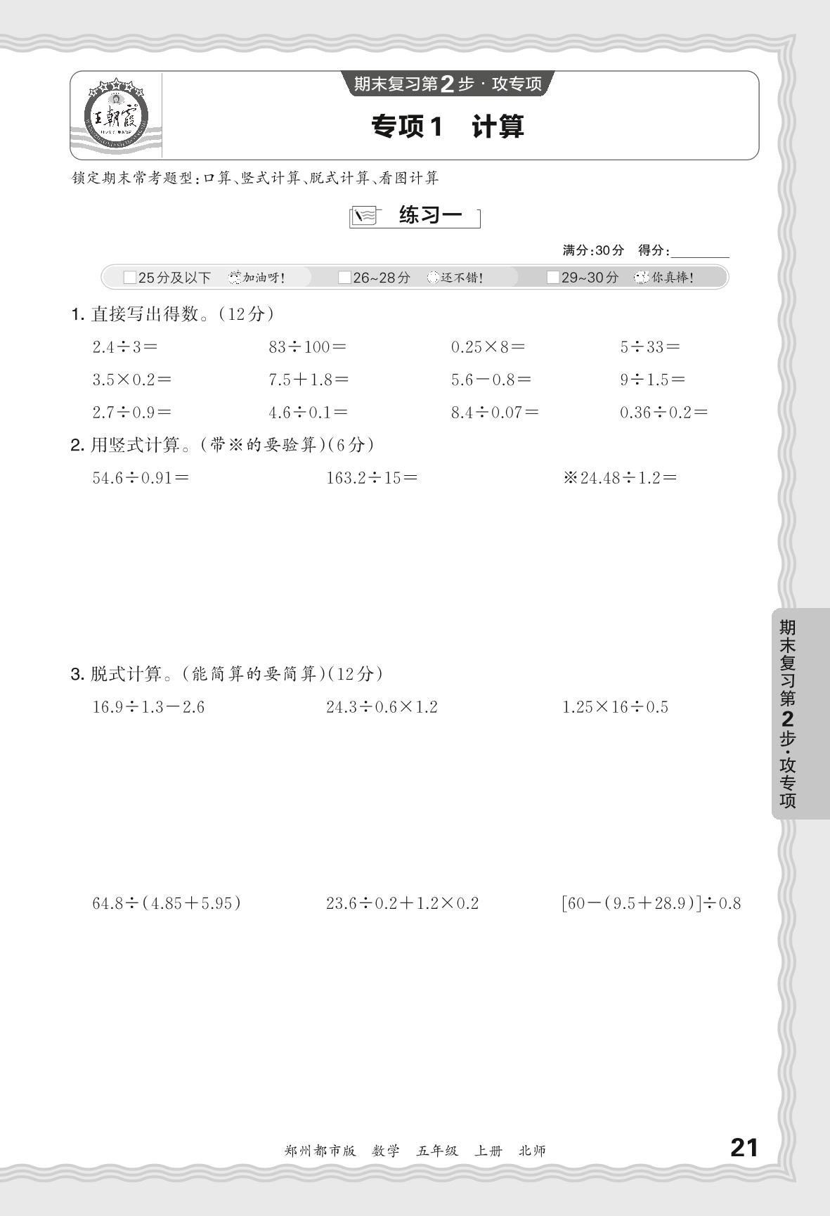 2023秋上册五年级数学北师版 期末专项卷·计算_R231128111427658【1】
