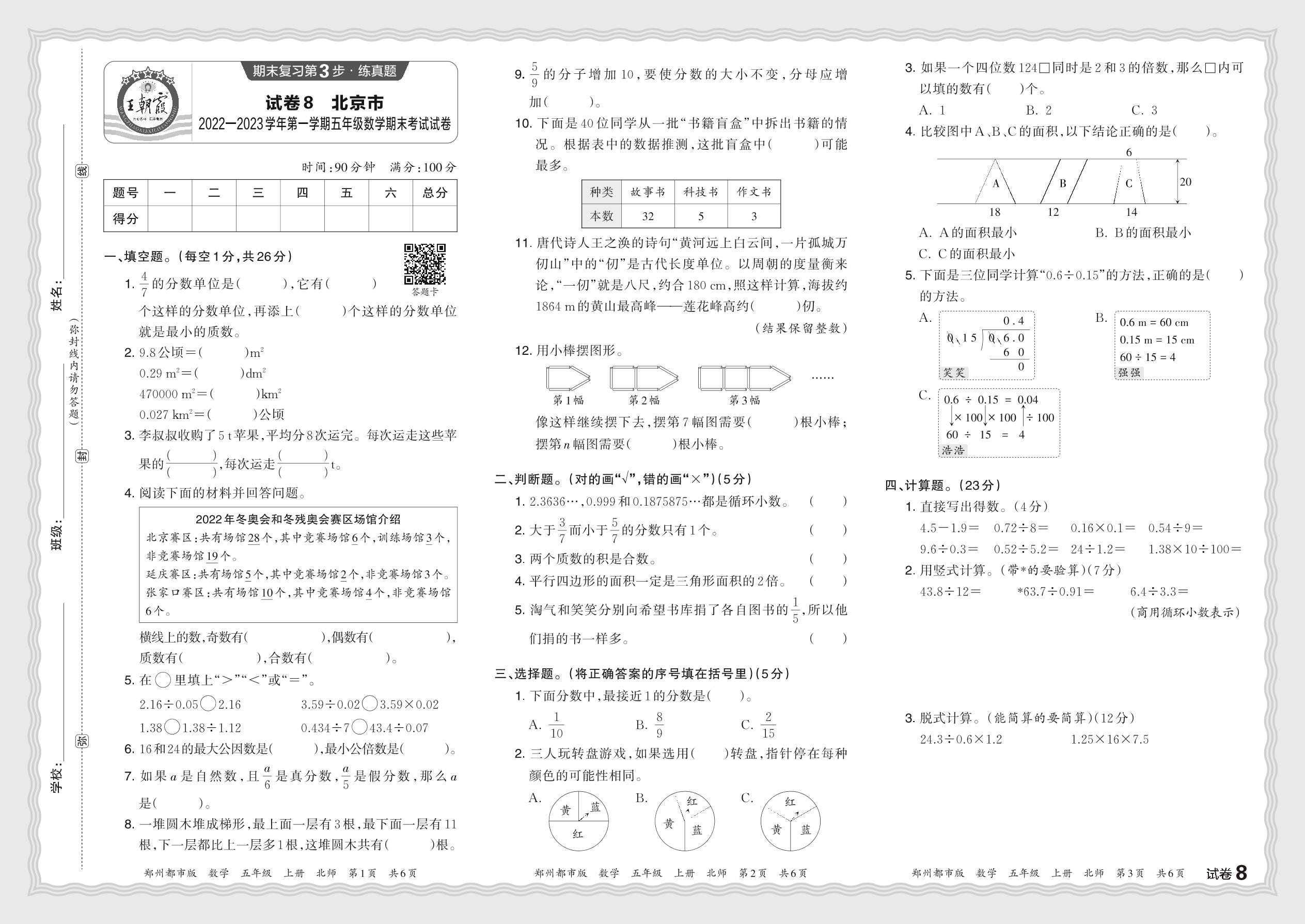北京市2022—2023学年第一学期五年级数学期末考试试卷(北师版)【8】