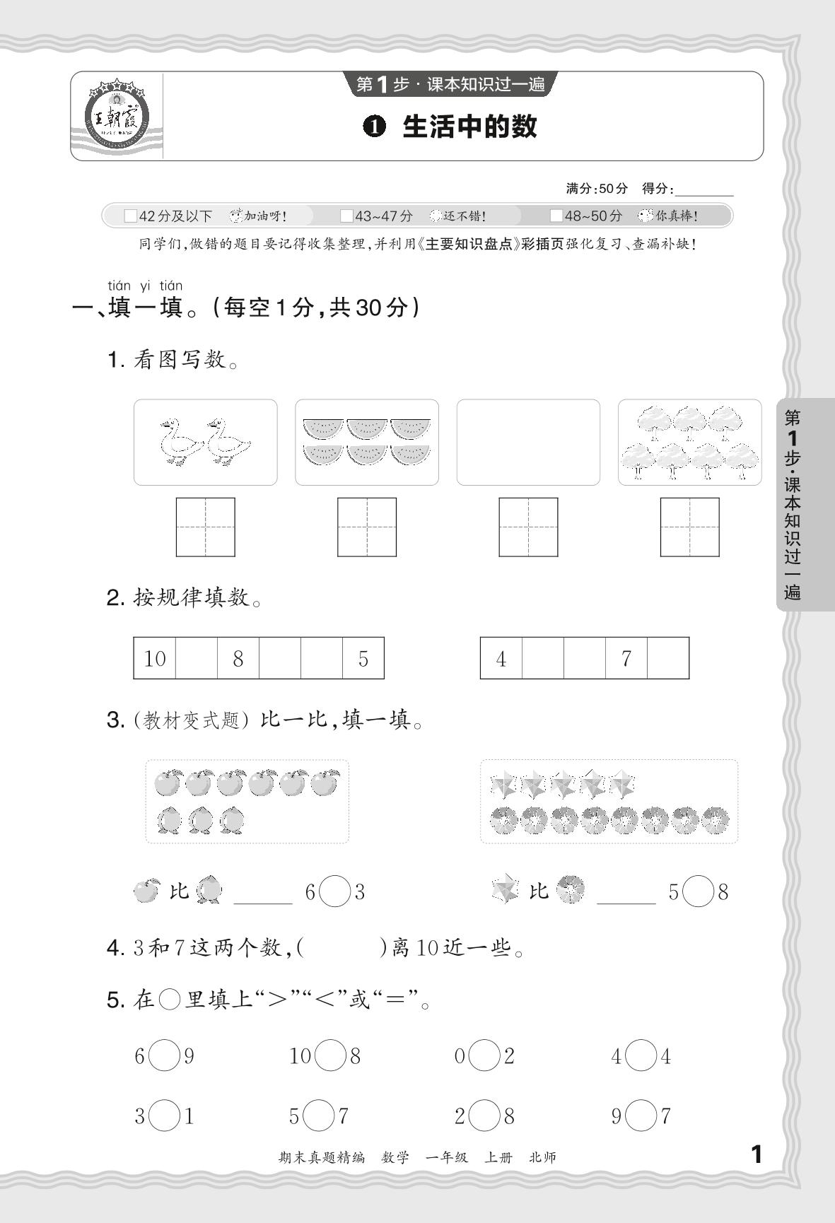 2023秋上册一年级数学北师版 期末过课本·生活中的数学【1】