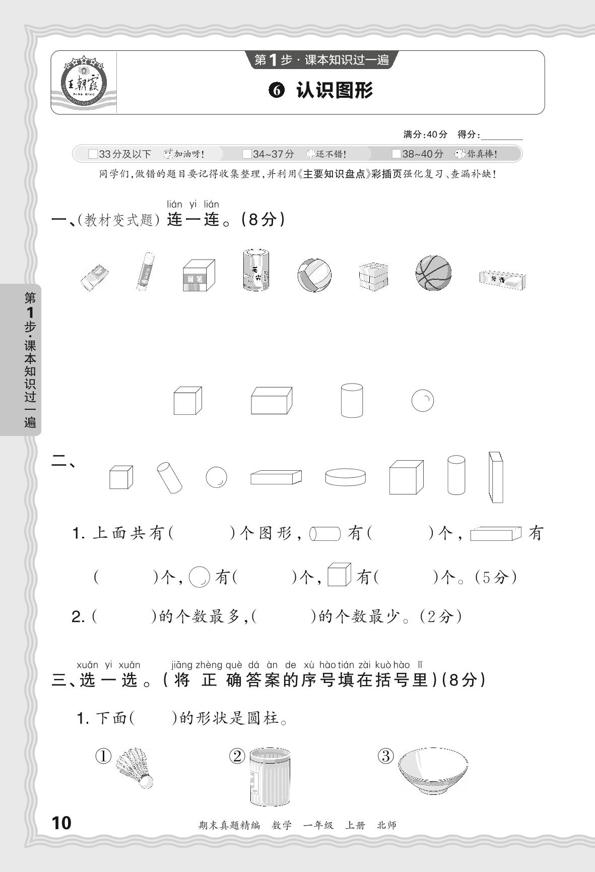 2023秋上册一年级数学北师版 期末过课本·认识图形【6】