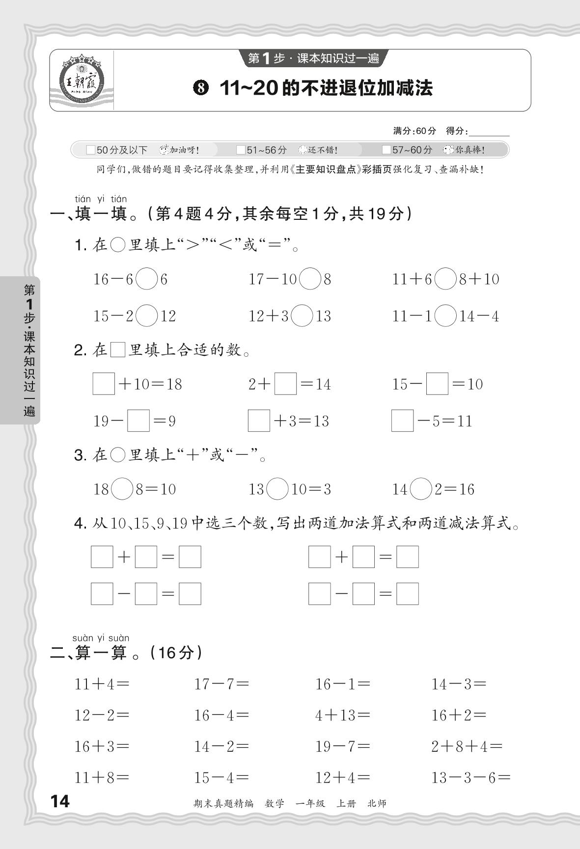 2023秋上册一年级数学北师版 期末过课本·11-20的不进退位加减法【8】