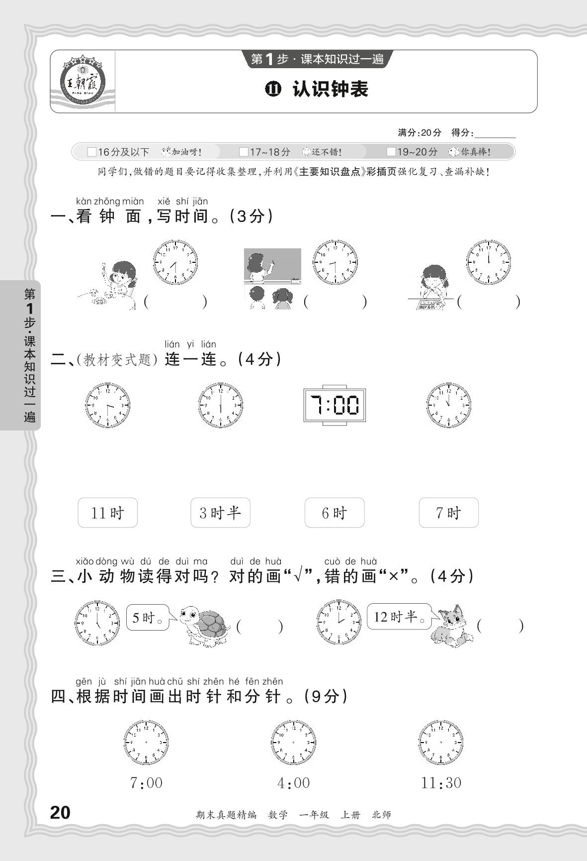 2023秋上册一年级数学北师版 期末过课本·认识钟表【11】