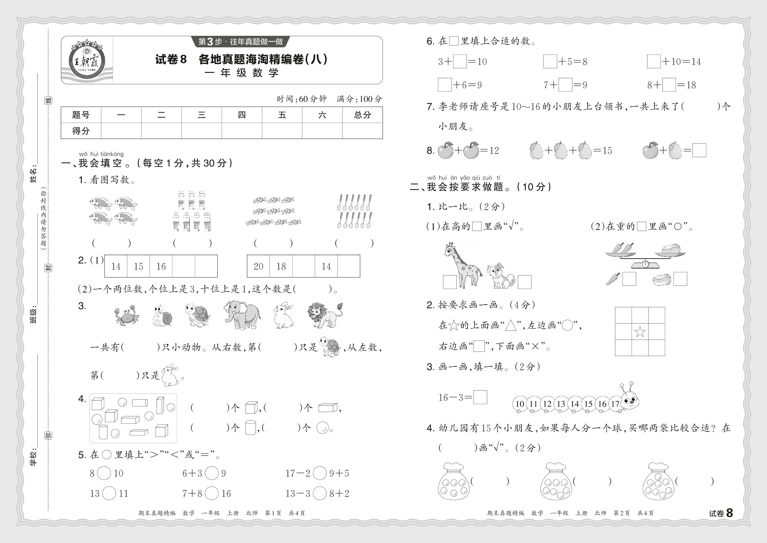 2023秋上册一年级数学北师版 各地真题海淘精编卷(二)【2】