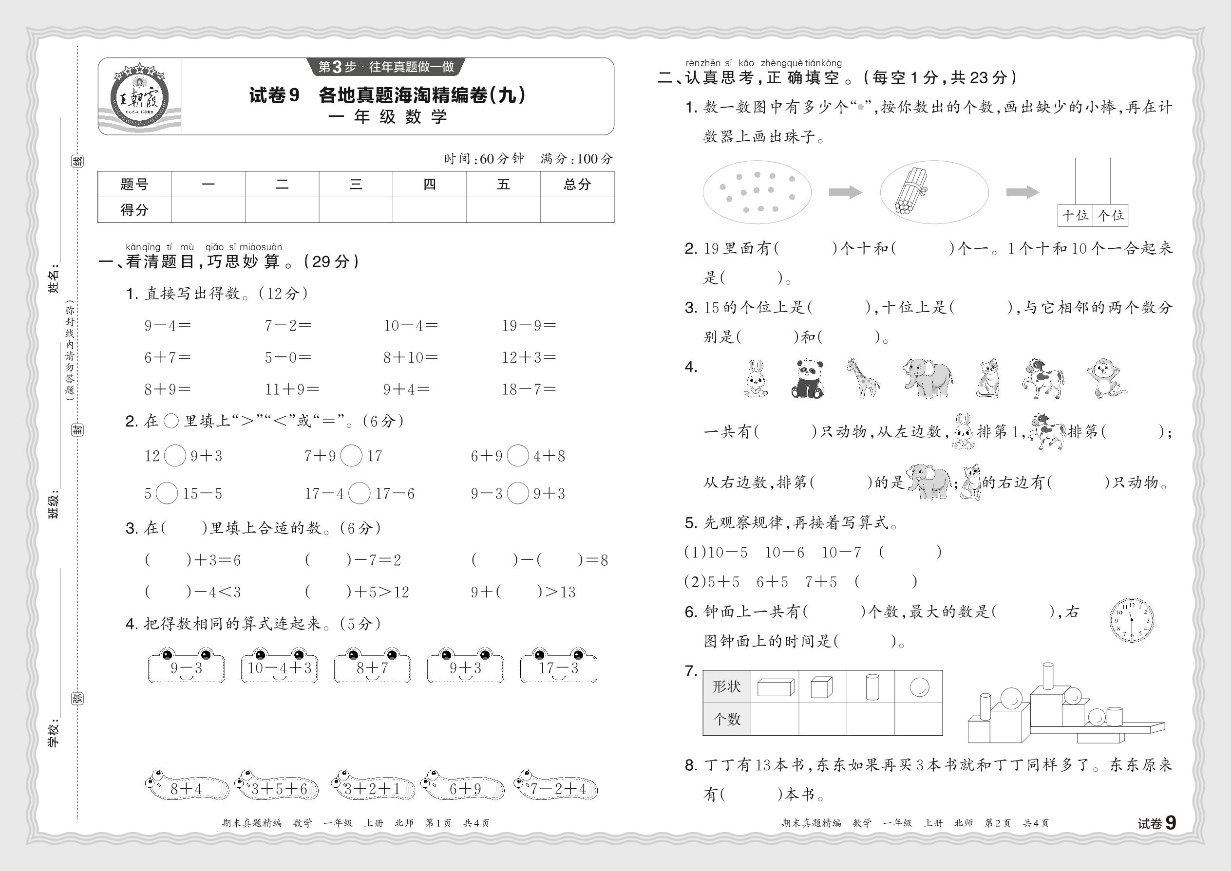 2023秋上册一年级数学北师版 各地真题海淘精编卷(三)【3】