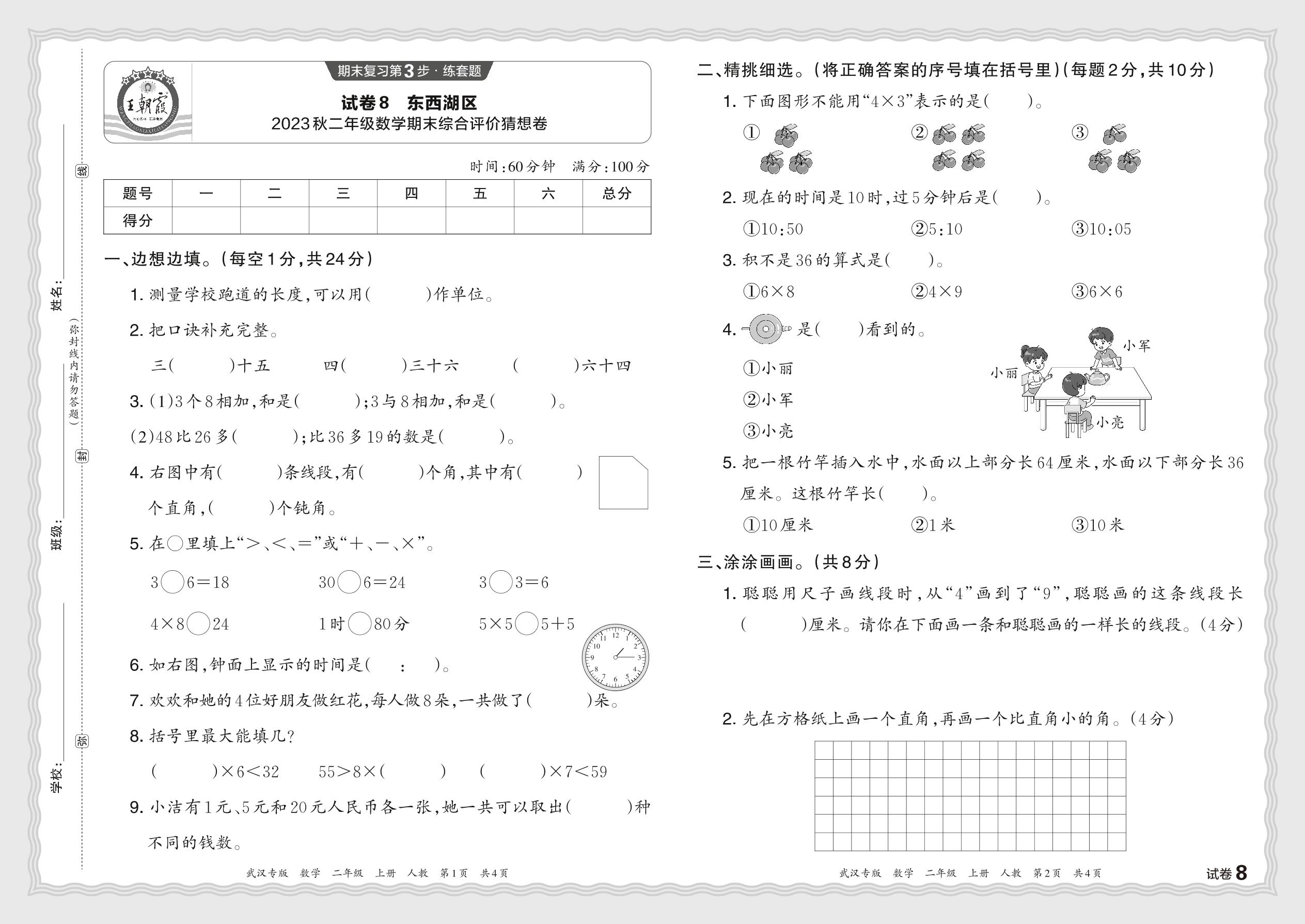 湖北省武汉市东西湖区2023秋二年级数学期末综合评价猜想卷(人教版)【8】