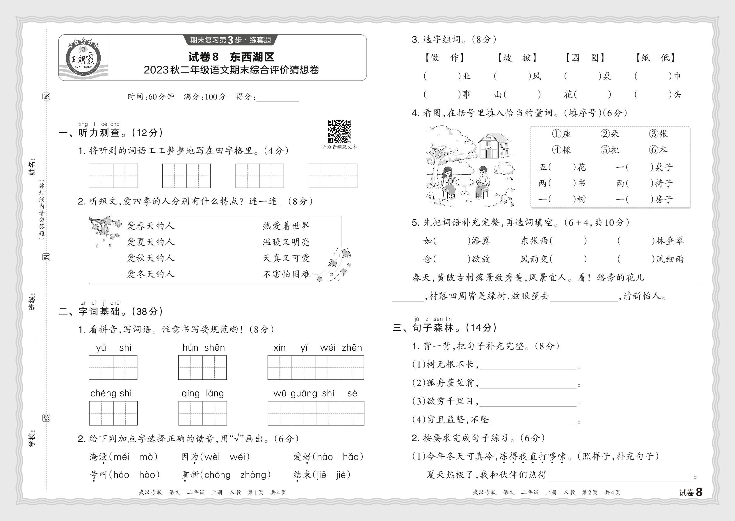 湖北省武汉市东西湖区2023秋二年级语文期末综合评价猜想卷(人教版)【8】
