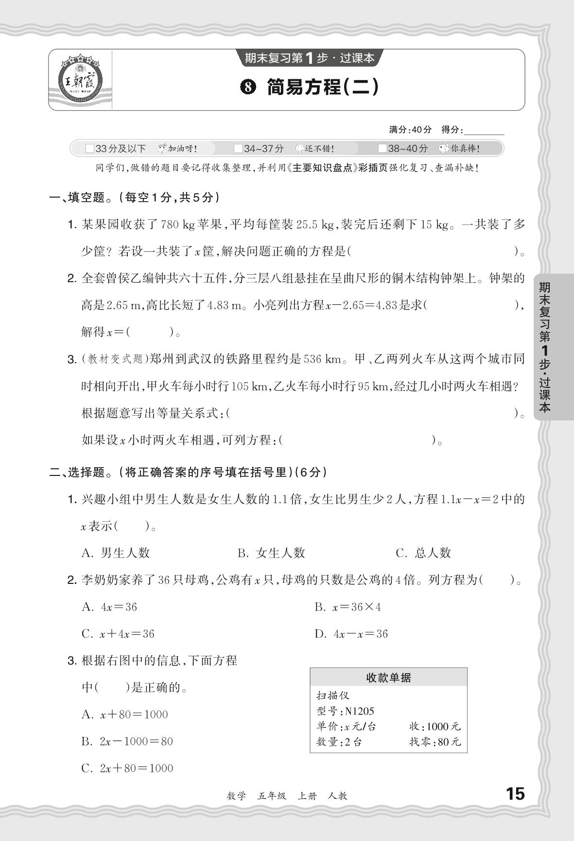2023秋上册五年级数学人教版 期末过课本QMB版·简易方程(二)【8】