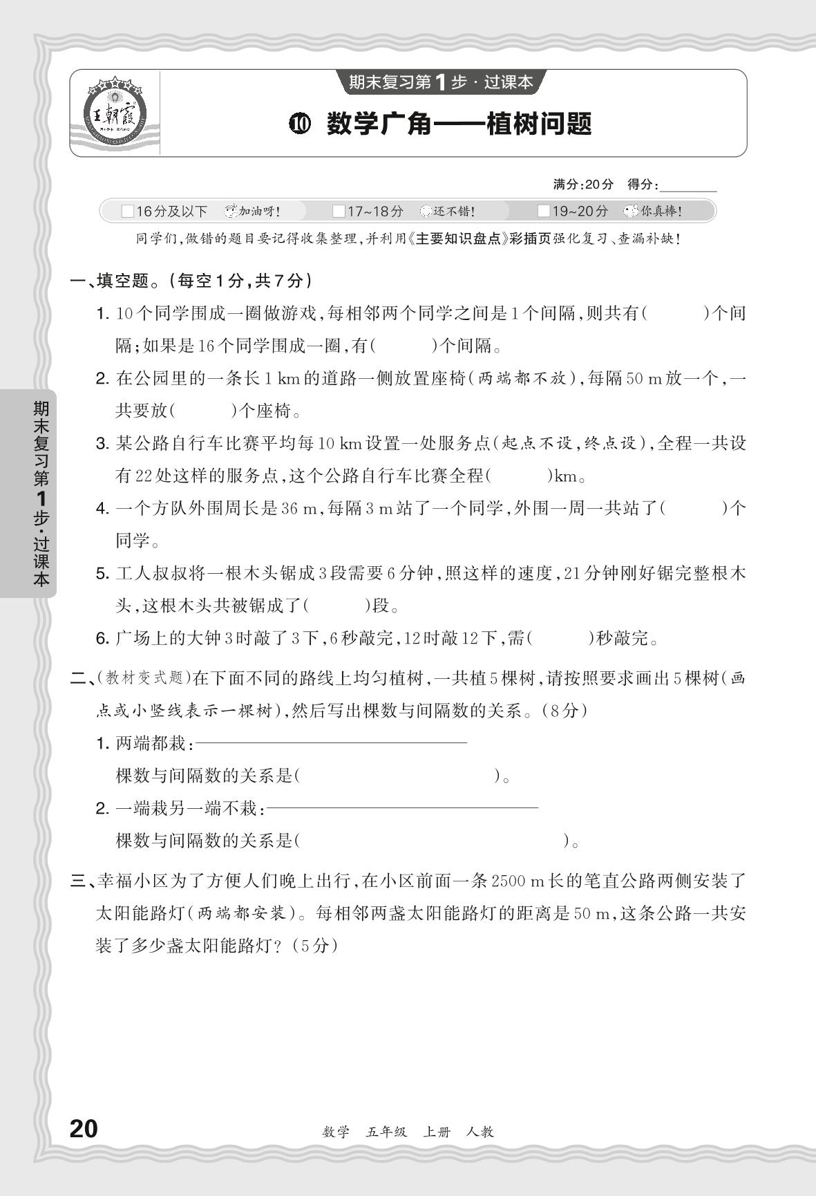2023秋上册五年级数学人教版 期末过课本QMB版·数学广角——植树问题【10】