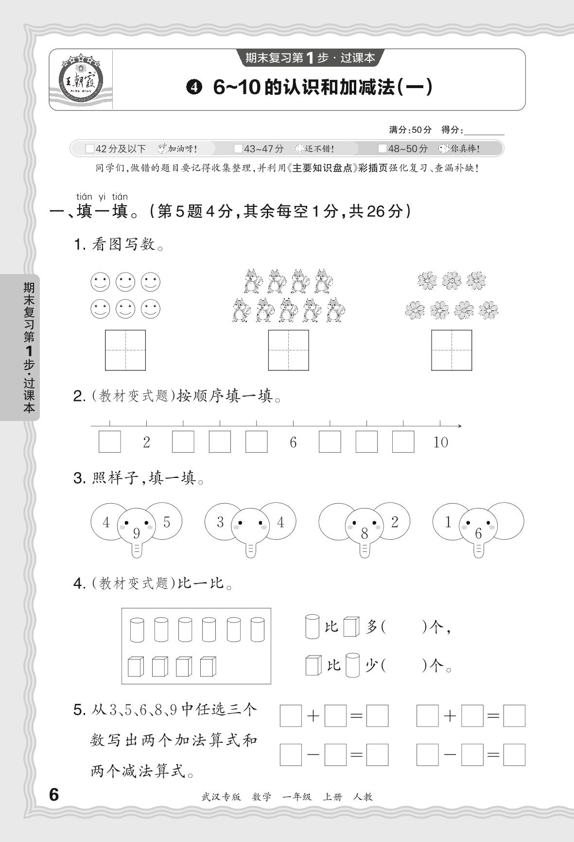 2023秋上册一年级数学人教版 期末过课本·6~10的认识和加减法(一)【4】