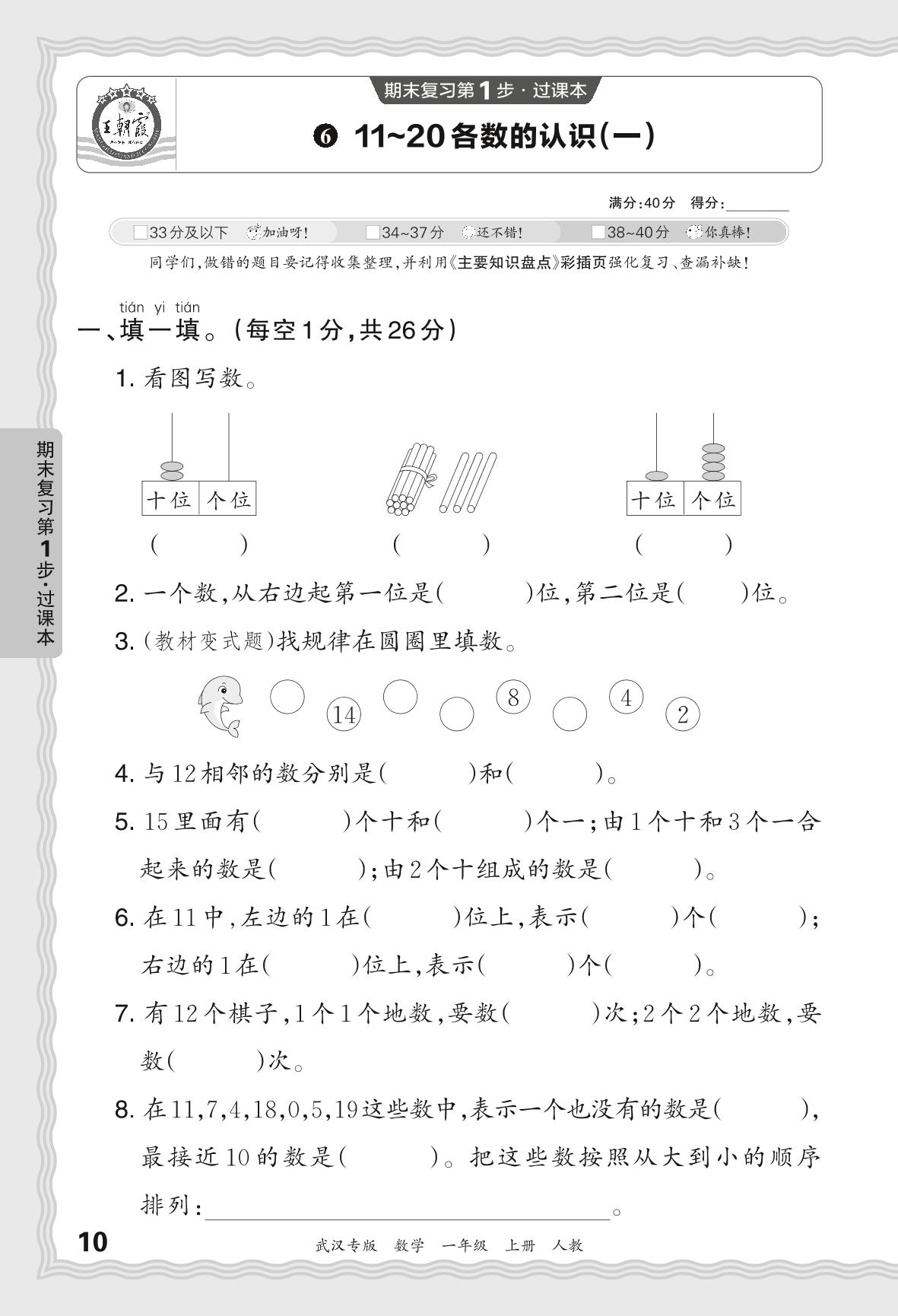 2023秋上册一年级数学人教版 期末过课本·11~20各数的认识(一)【6】