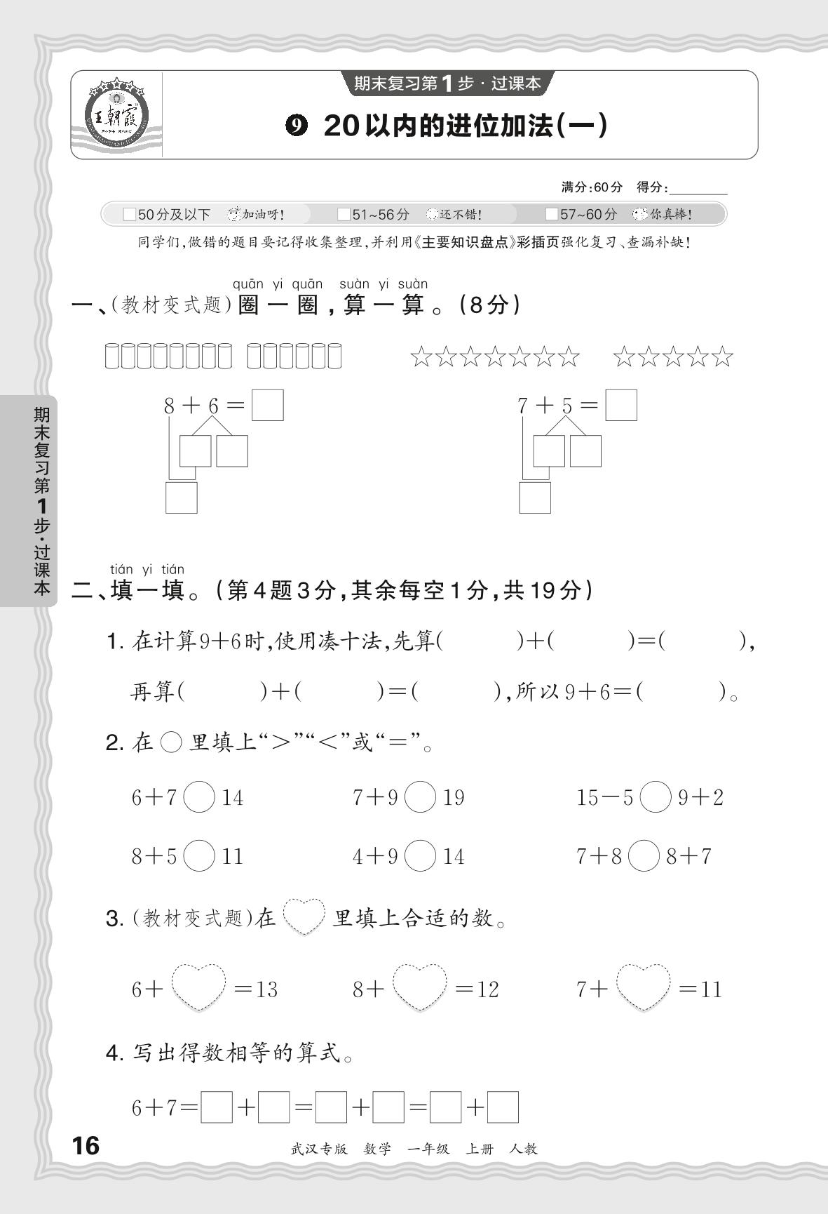 2023秋上册一年级数学人教版 期末过课本·20以内的进位加法(一)【9】