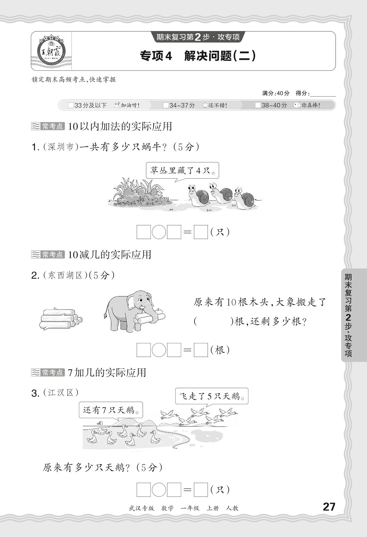 2023秋上册一年级数学人教版 期末专项·解决问题(二)【4】