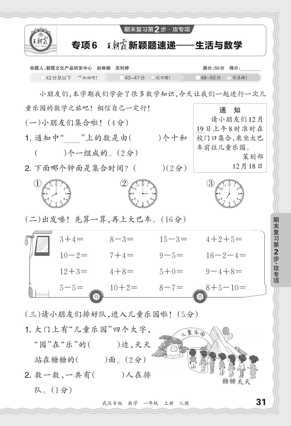 2023秋上册一年级数学人教版 期末专项·王朝霞新颖题速递——生活与数学【6】
