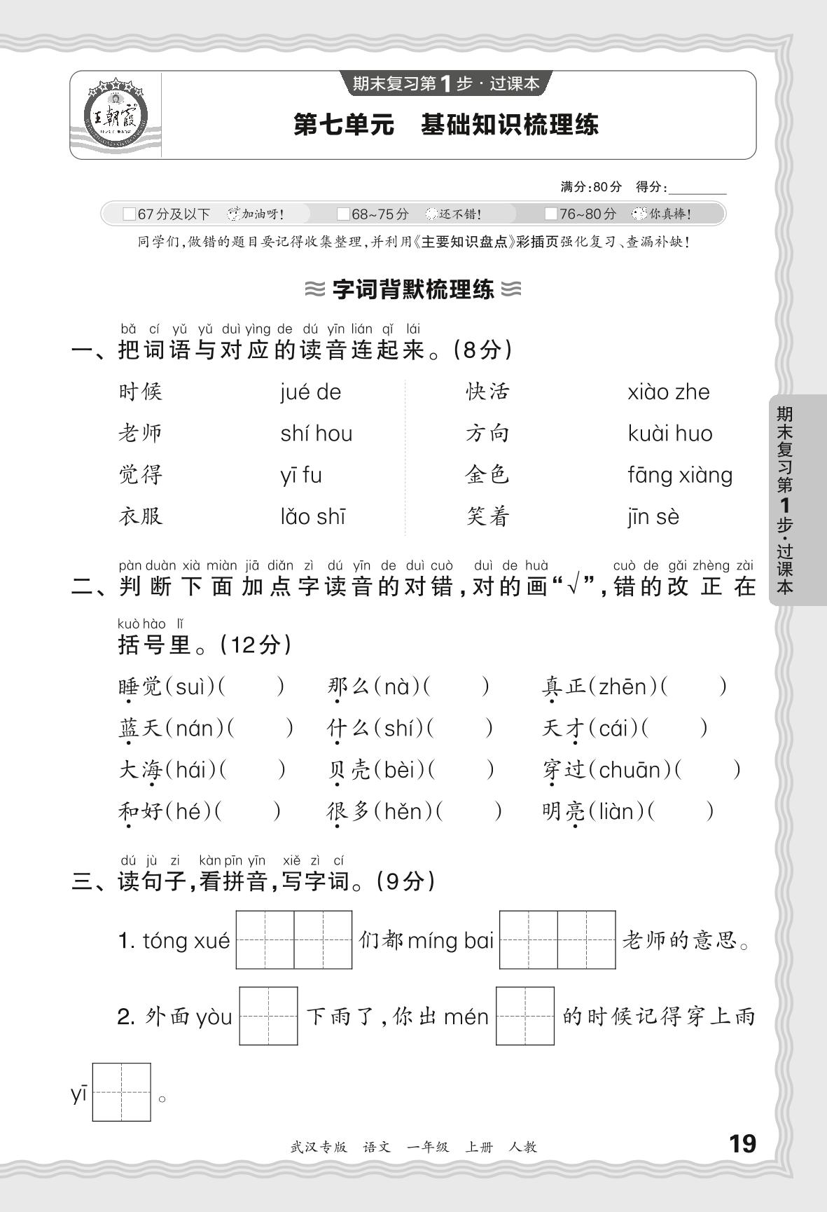2023秋上册一年级语文人教版 期末过课本·第七单元 基础知识梳理练