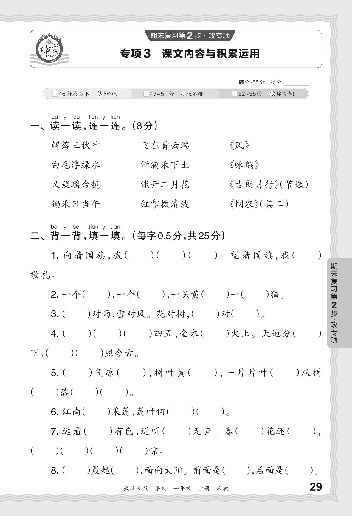 2023秋上册一年级语文人教版 期末专项·课文内容与积累运用【3】