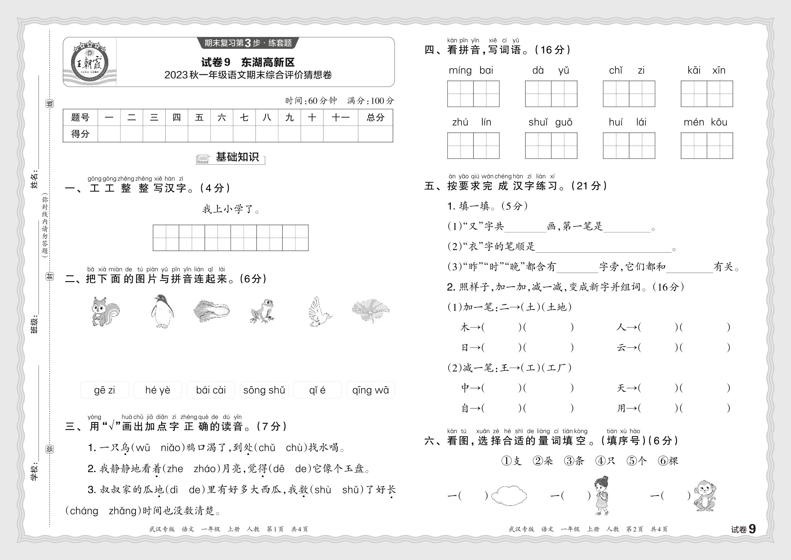 湖北省武汉市东湖高新区2023秋一年级语文期末综合评价猜想卷(人教版)【9】