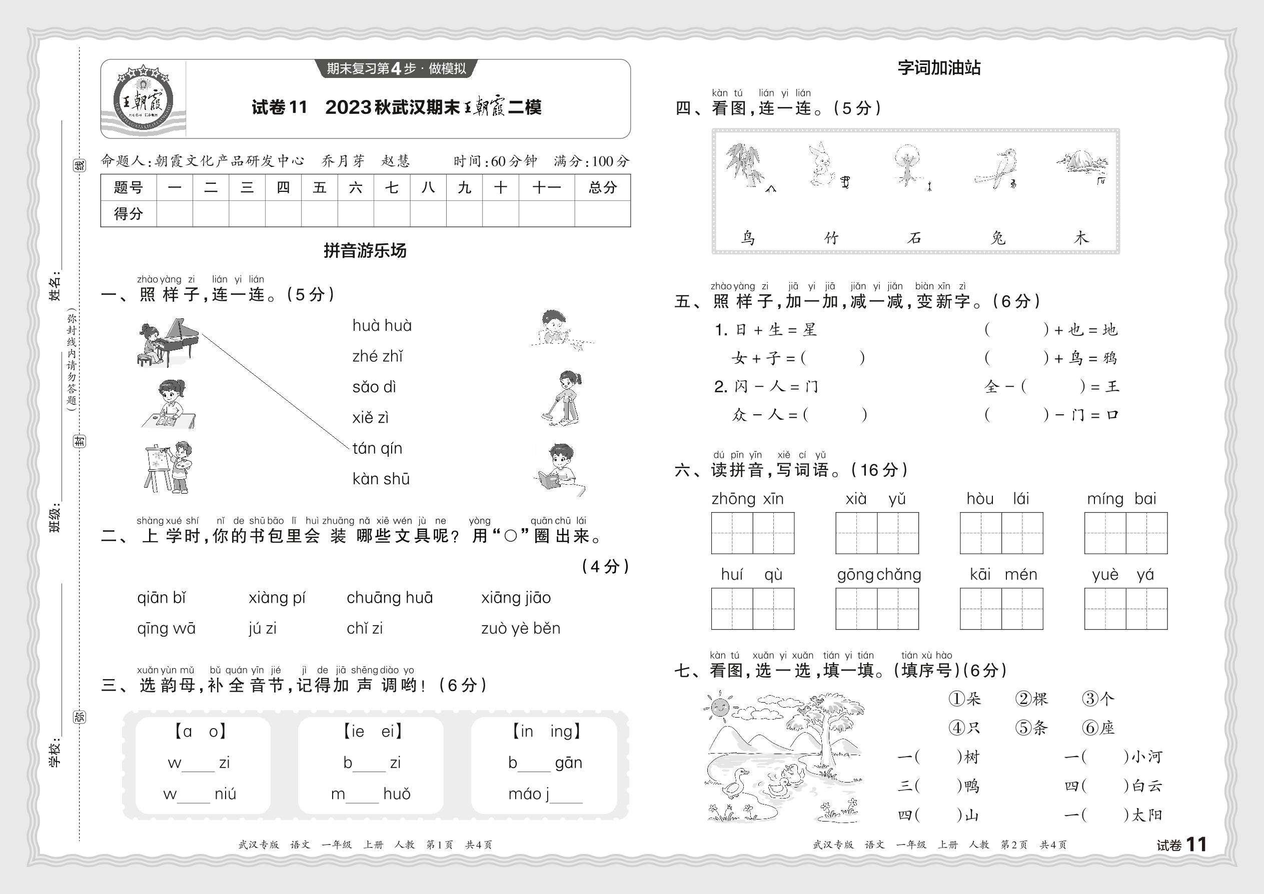 2023秋上册一年级语文人教版 湖北武汉期末王朝霞二模