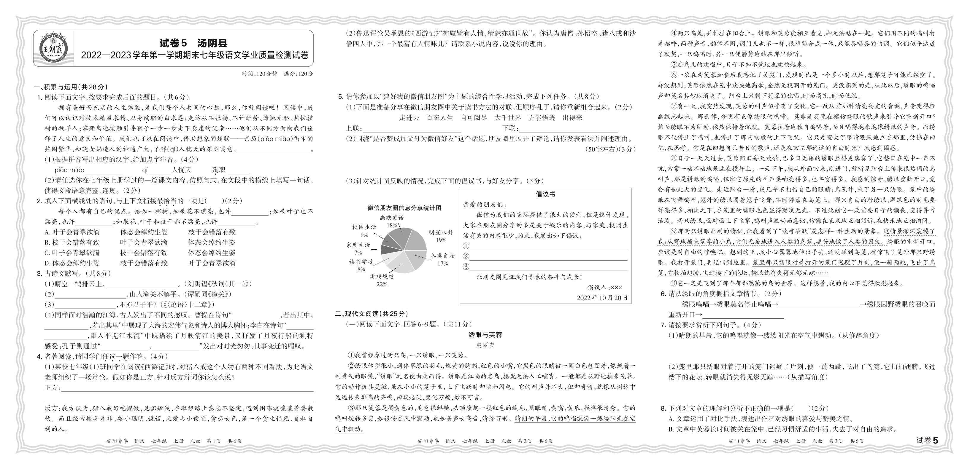 河南省安阳市汤阴县2022—2023学年第一学期期末七年级语文学业质量检测试卷(人教版)【5】