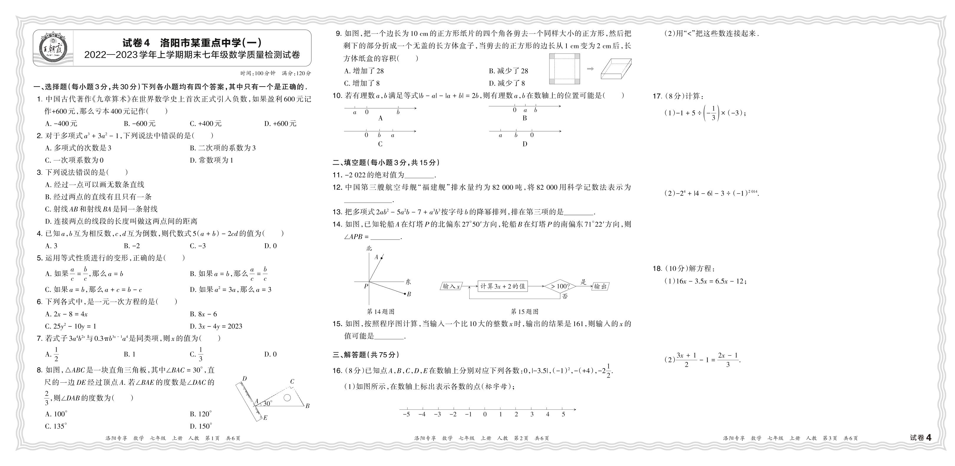 河南省洛阳市某重点中学(一)2022—2023学年上学期期末七年级数学质量检测试卷(人教版)【4】