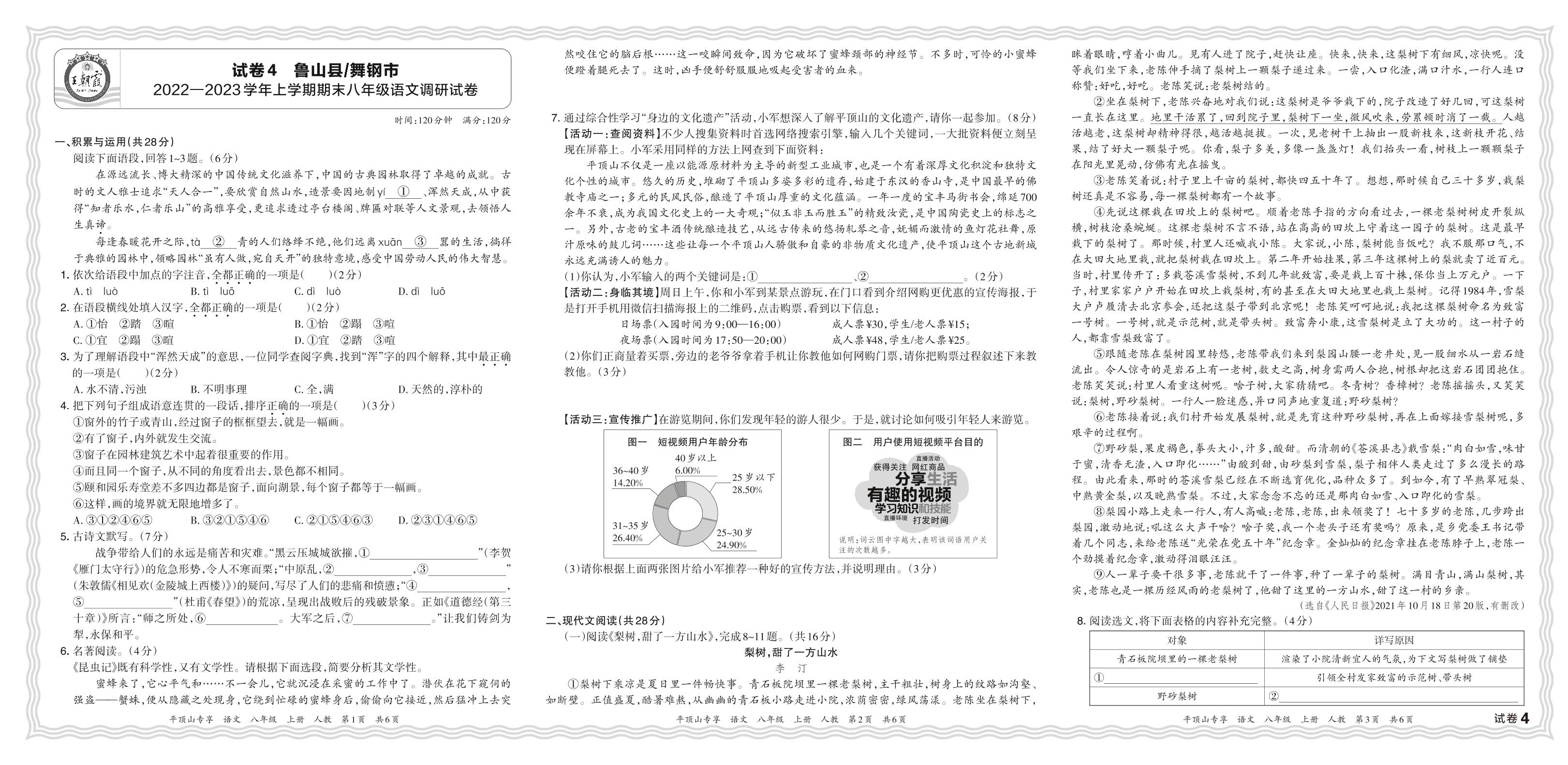 河南省平顶山市鲁山县、舞钢市2022—2023学年上学期期末八年级语文调研试卷(人教版)【4】