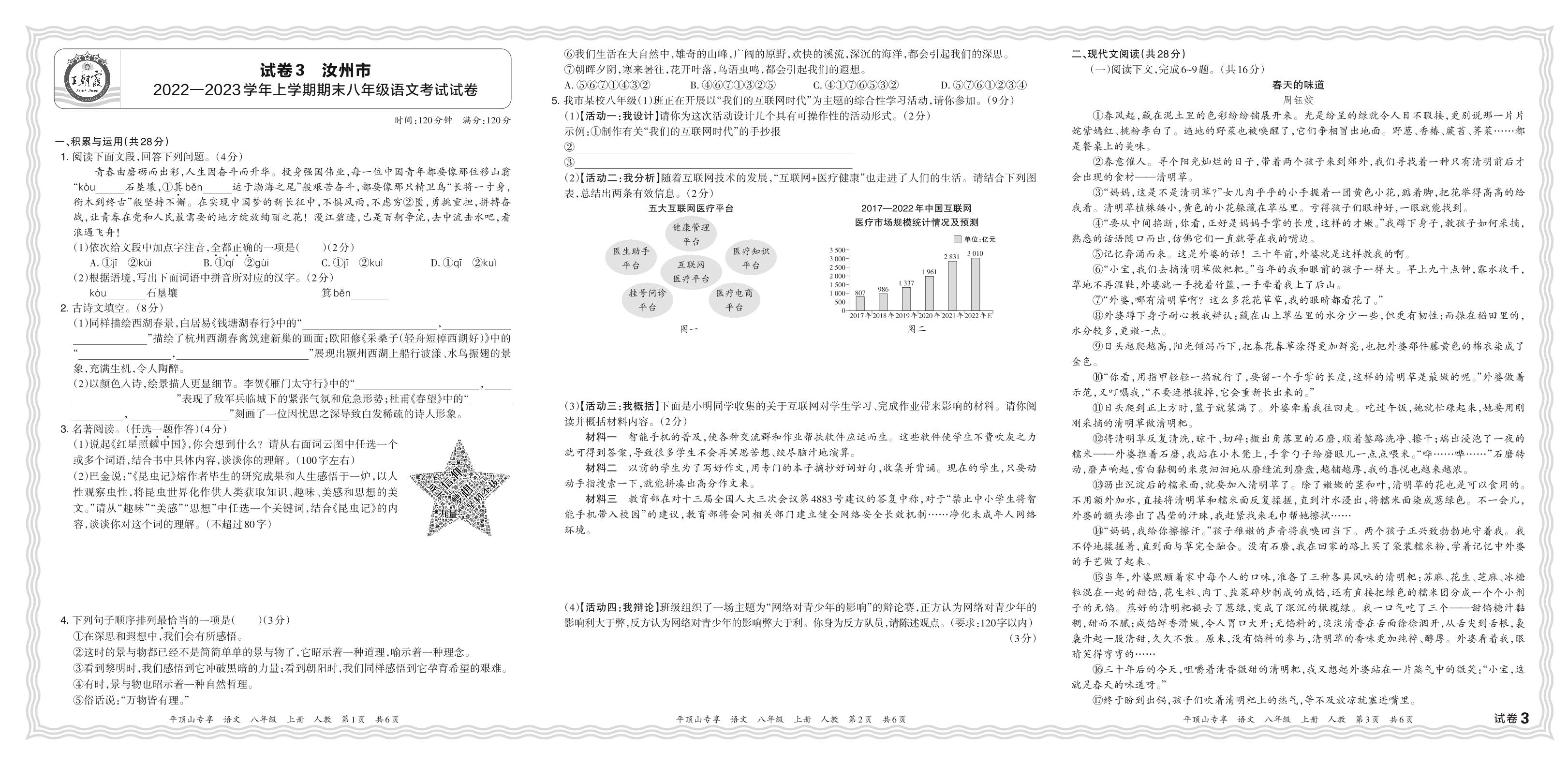河南省平顶山市汝州市2022—2023学年上学期期末八年级语文考试试卷(人教版)【3】