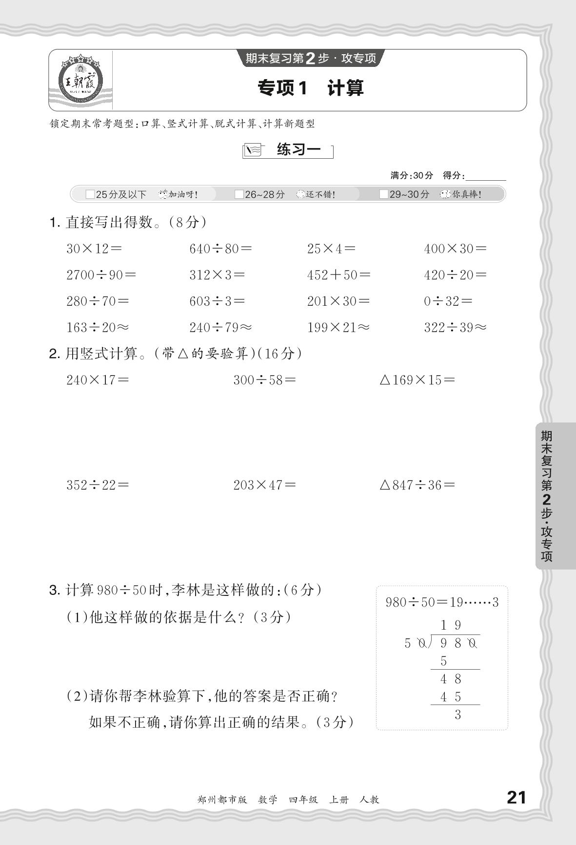 四年级数学人教版上册专项卷