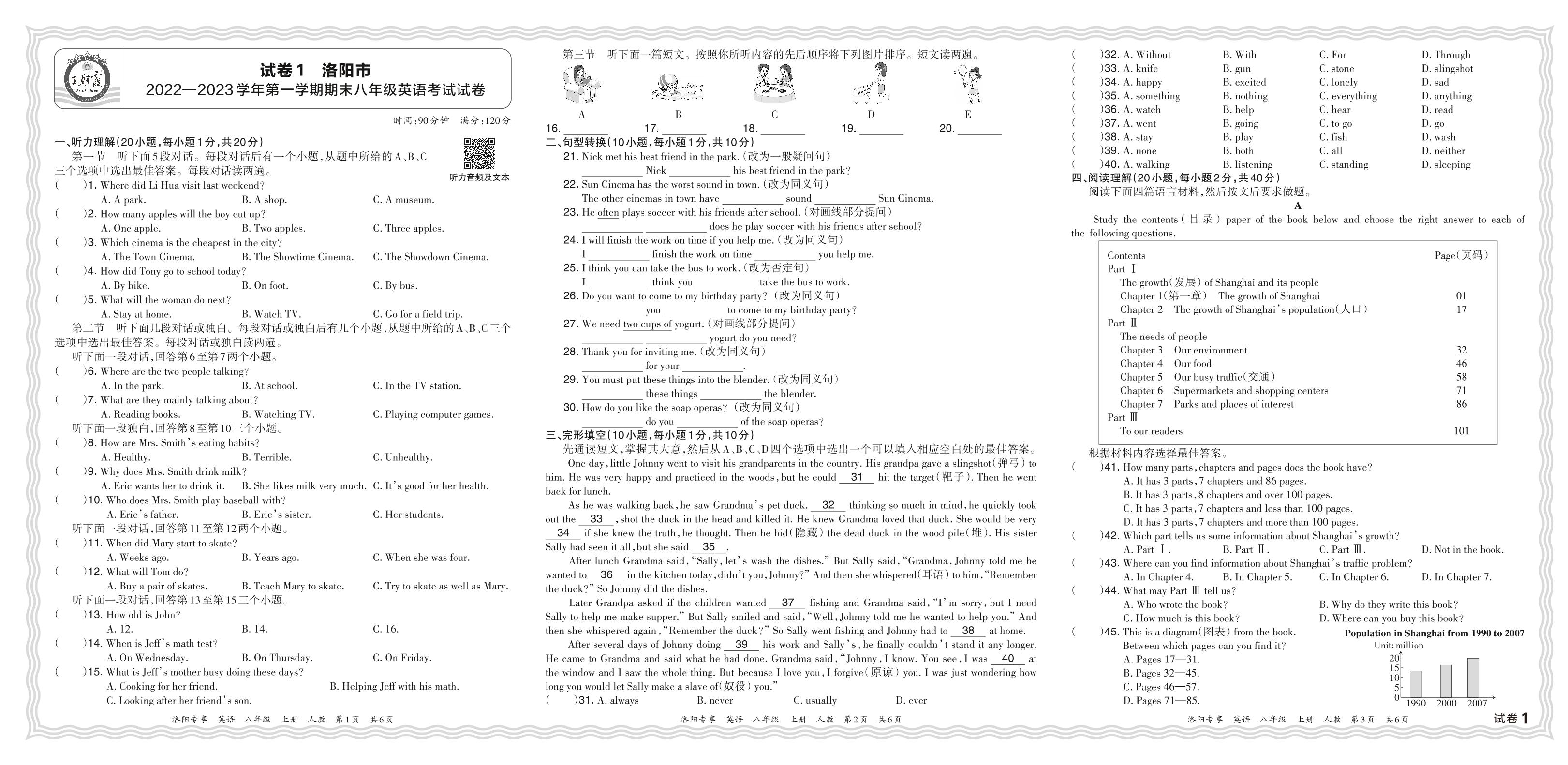 河南省洛阳市2022—2023学年第一学期期末八年级英语考试试卷(人教版)【1】