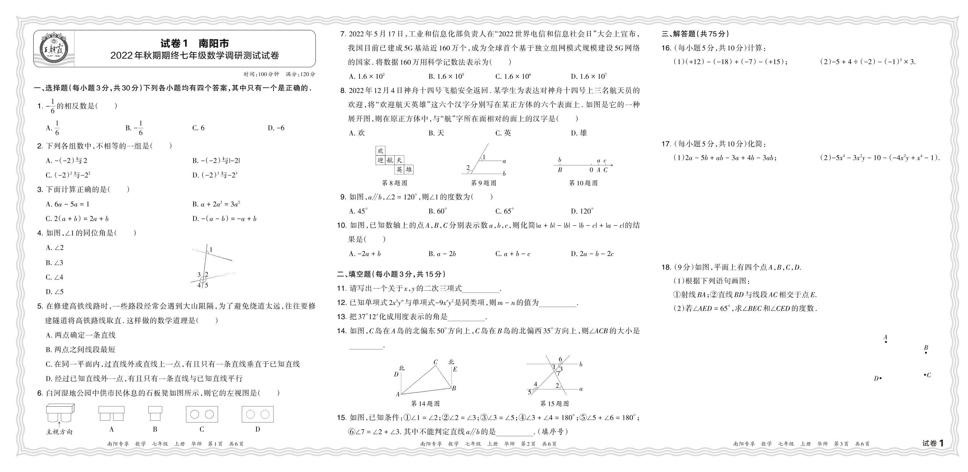 河南省南阳市2022年秋期期终七年级数学调研测试试卷(华师版)【1】