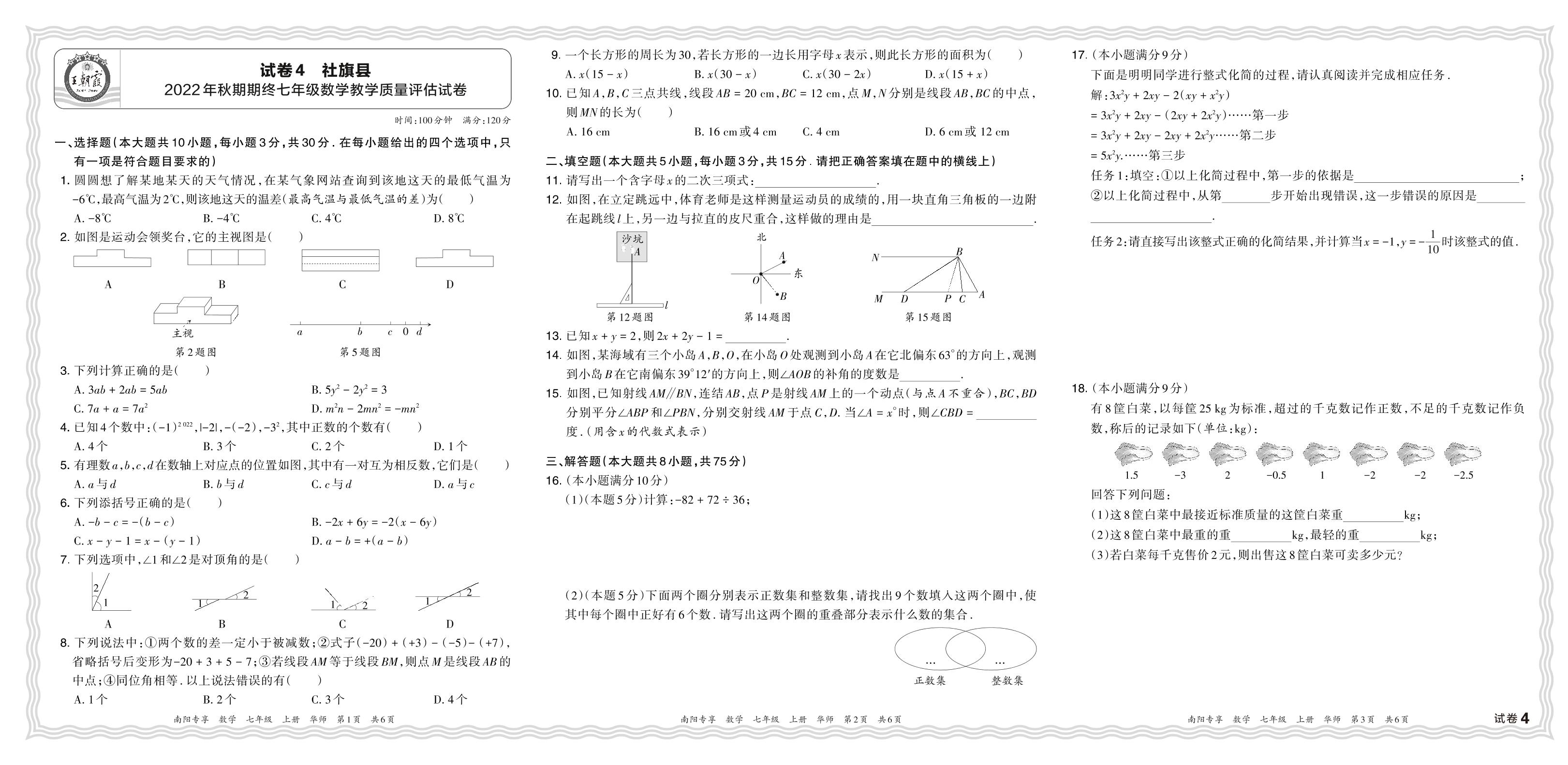 河南省南阳市社旗县2022年秋期期终七年级数学教学质量评估试卷(华师版)【4】