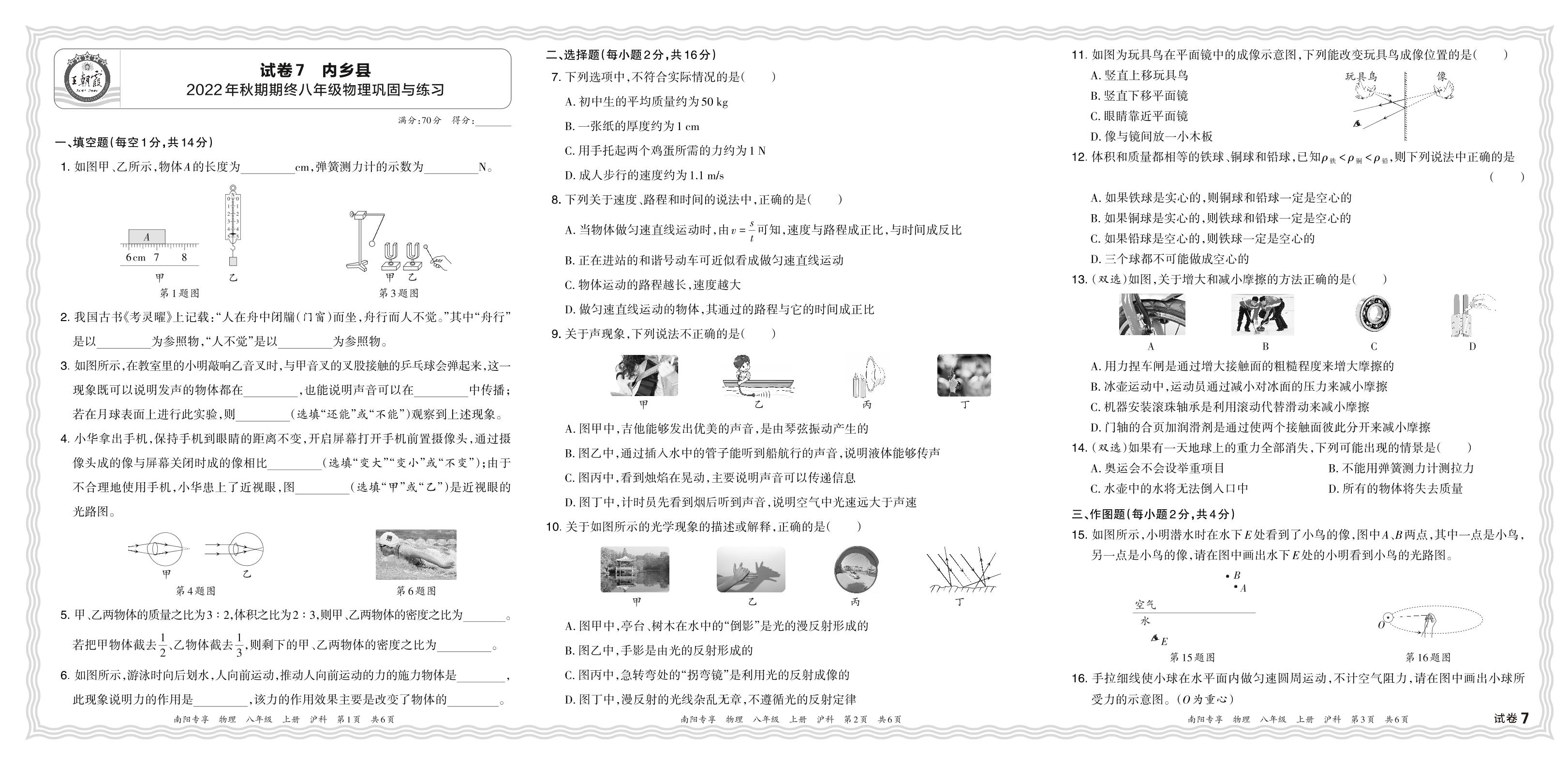 河南省南阳市内乡县2022年秋期期终八年级物理巩固与练习(沪科版)【7】