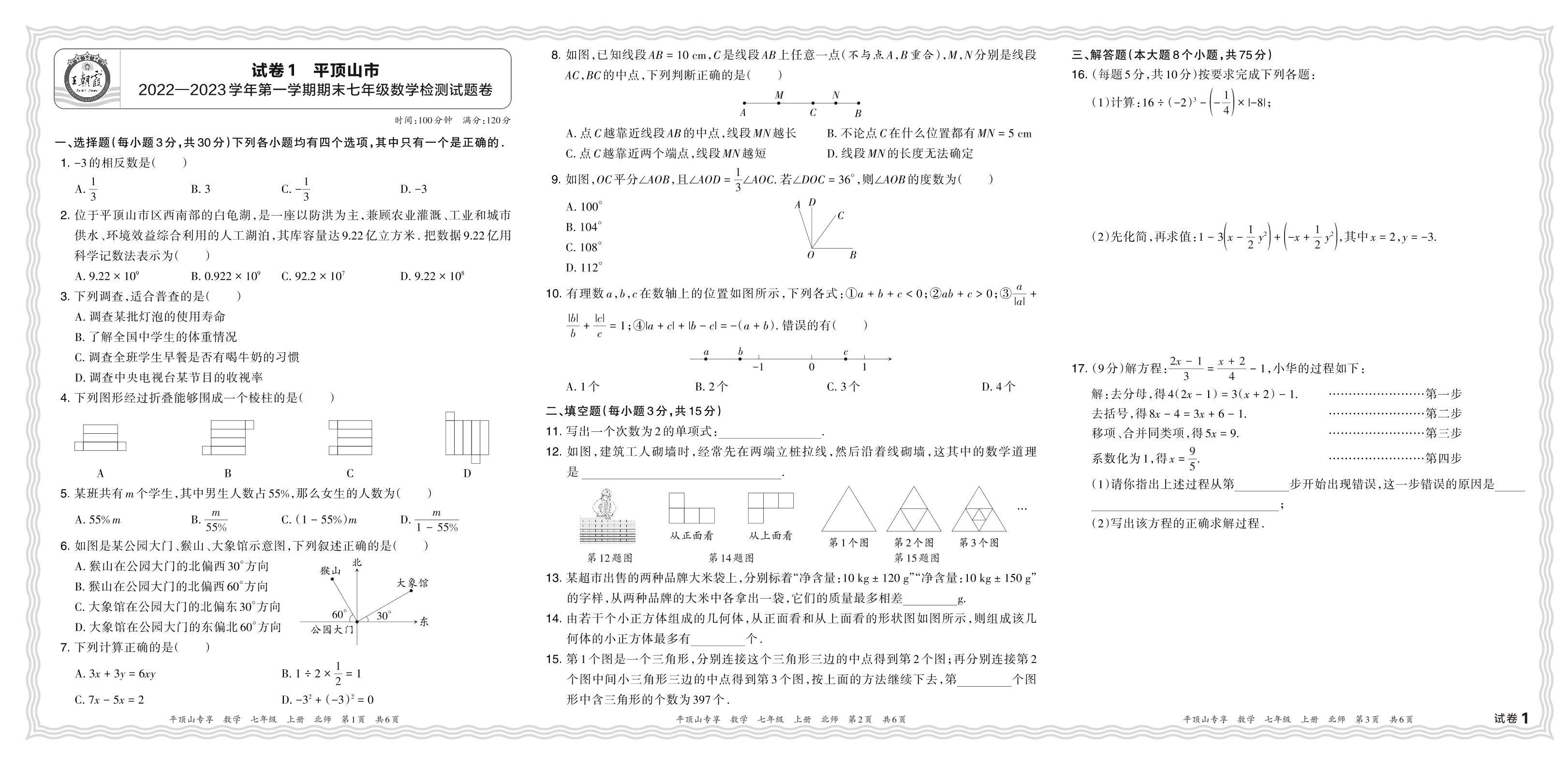 河南省平顶山市2022—2023学年第一学期期末七年级数学检测试题卷(北师版)【1】
