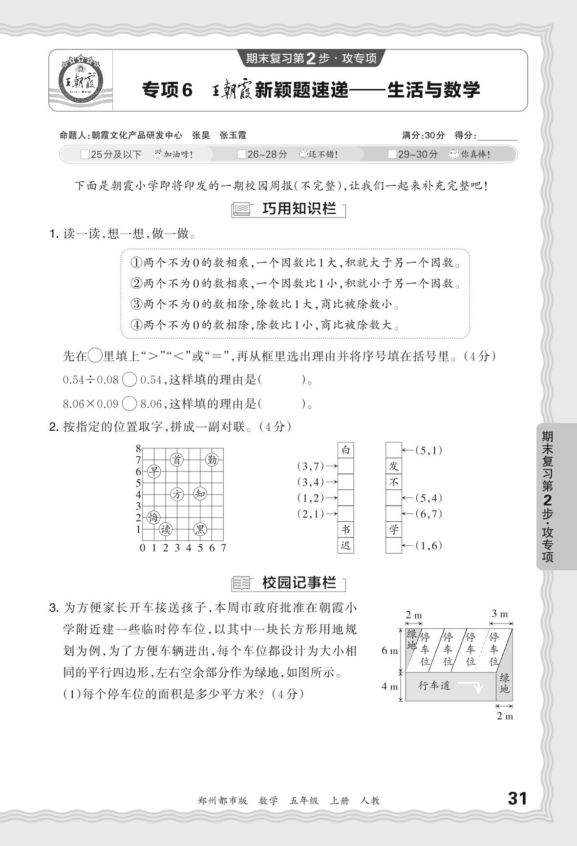 2023秋上册五年级数学人教版 期末专项卷·王朝霞新颖题速递——生活与数学_R231128141413025【6】