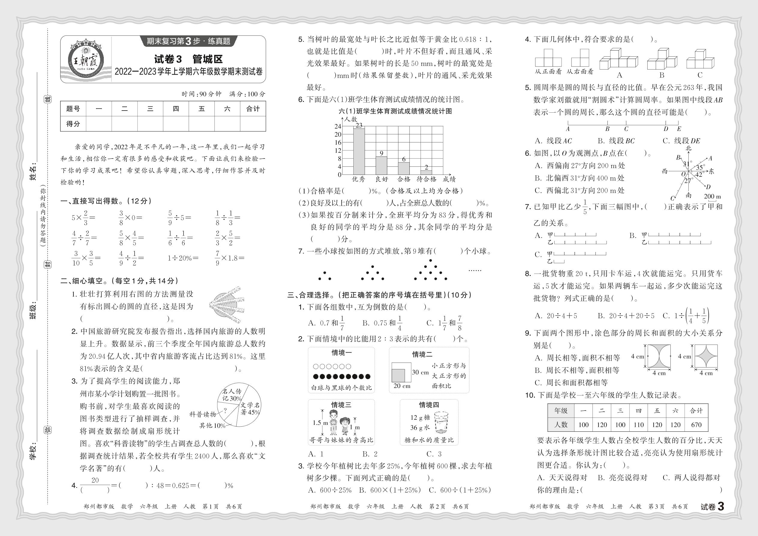 河南省郑州市管城区2022—2023学年上学期六年级数学期末测试卷(人教版)_R231215145907879【3】