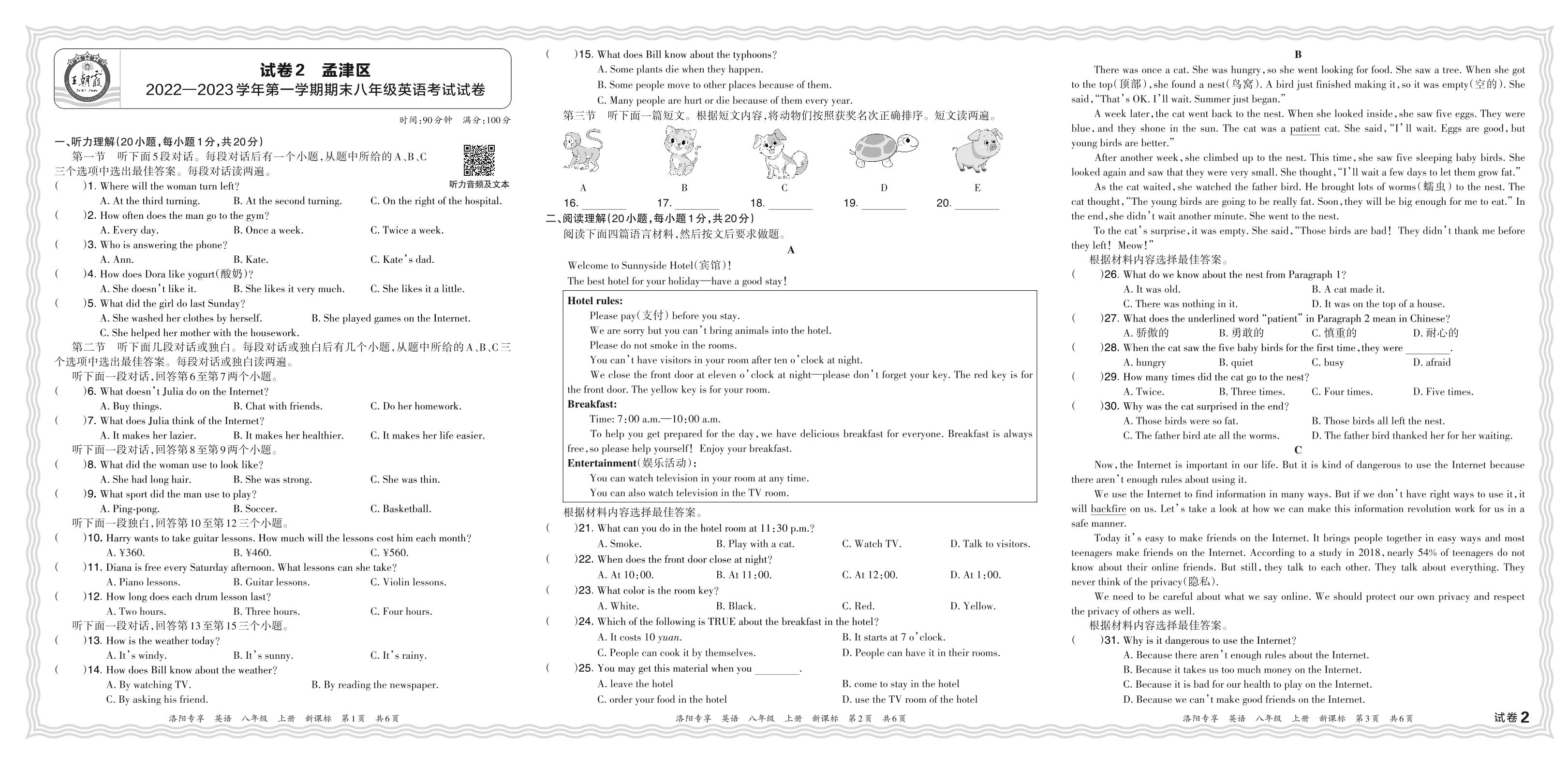 河南省洛阳市孟津区2022-2023学年第一学期期末八年级英语质量检测试卷(新课标版)【2】