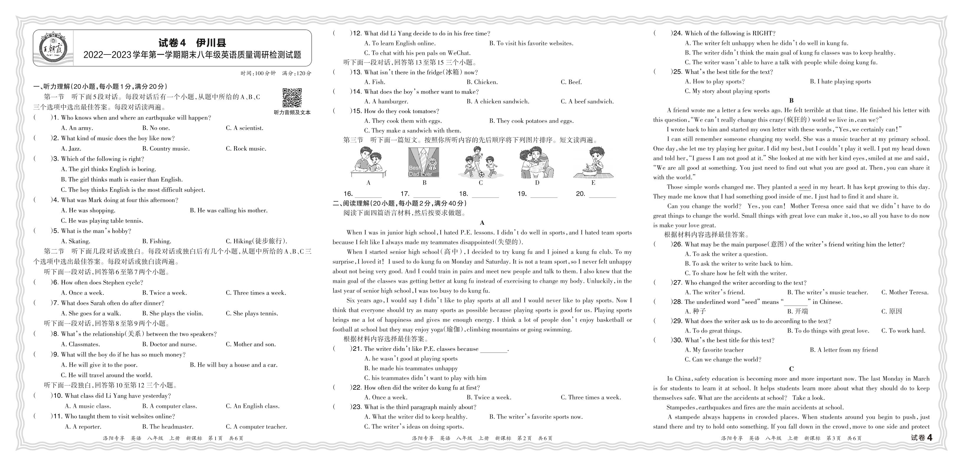 河南省洛阳市伊川县2022—2023学年第一学期期末八年级英语质量调研检测试题(新课标版)【4】