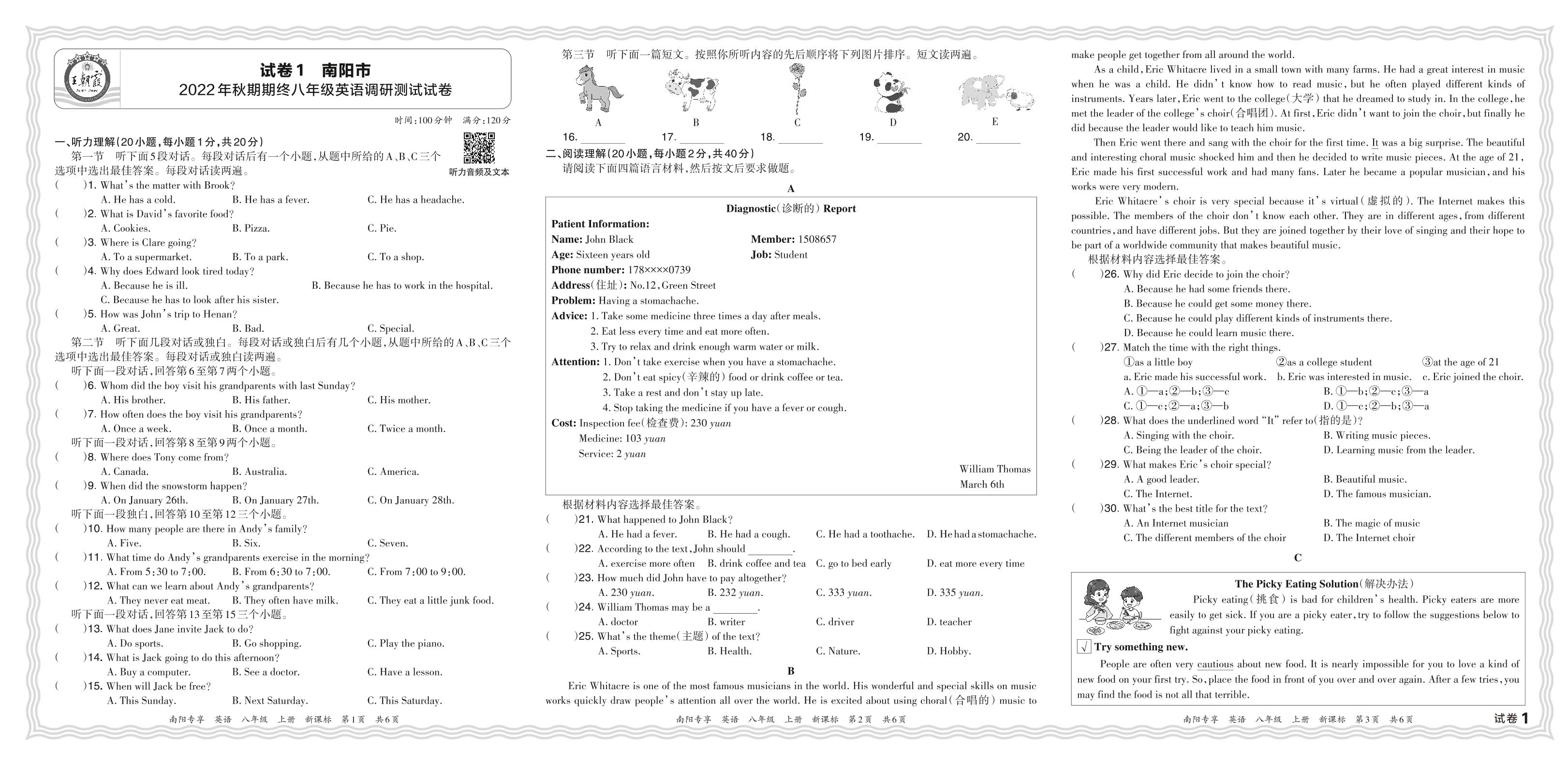 河南省南阳市2022年秋期期终八年级英语调研测试试卷(新课标版)【1】