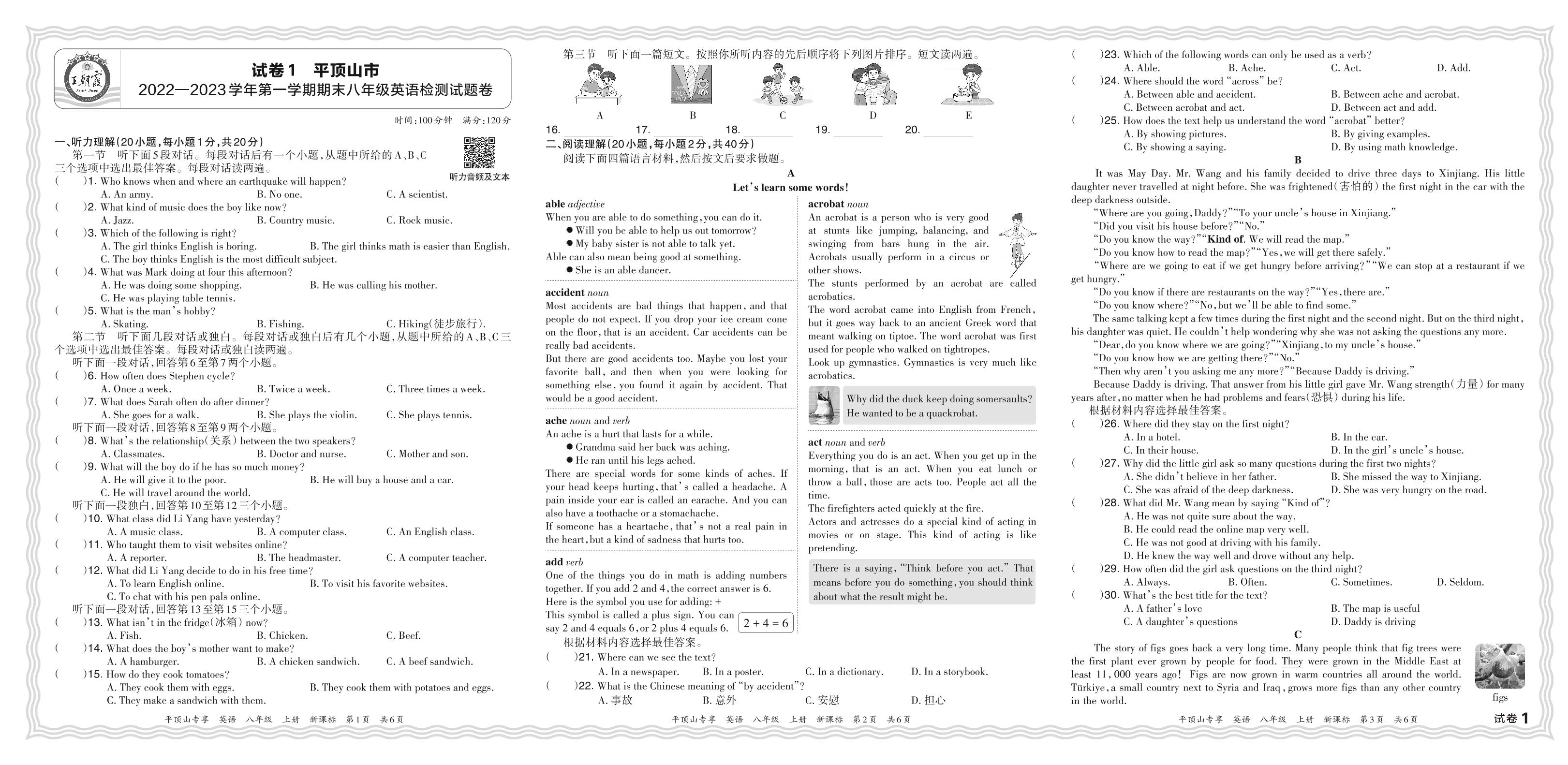 河南省平顶山市2022—2023学年第一学期期末八年级英语检测试题卷(新课标版)【1】