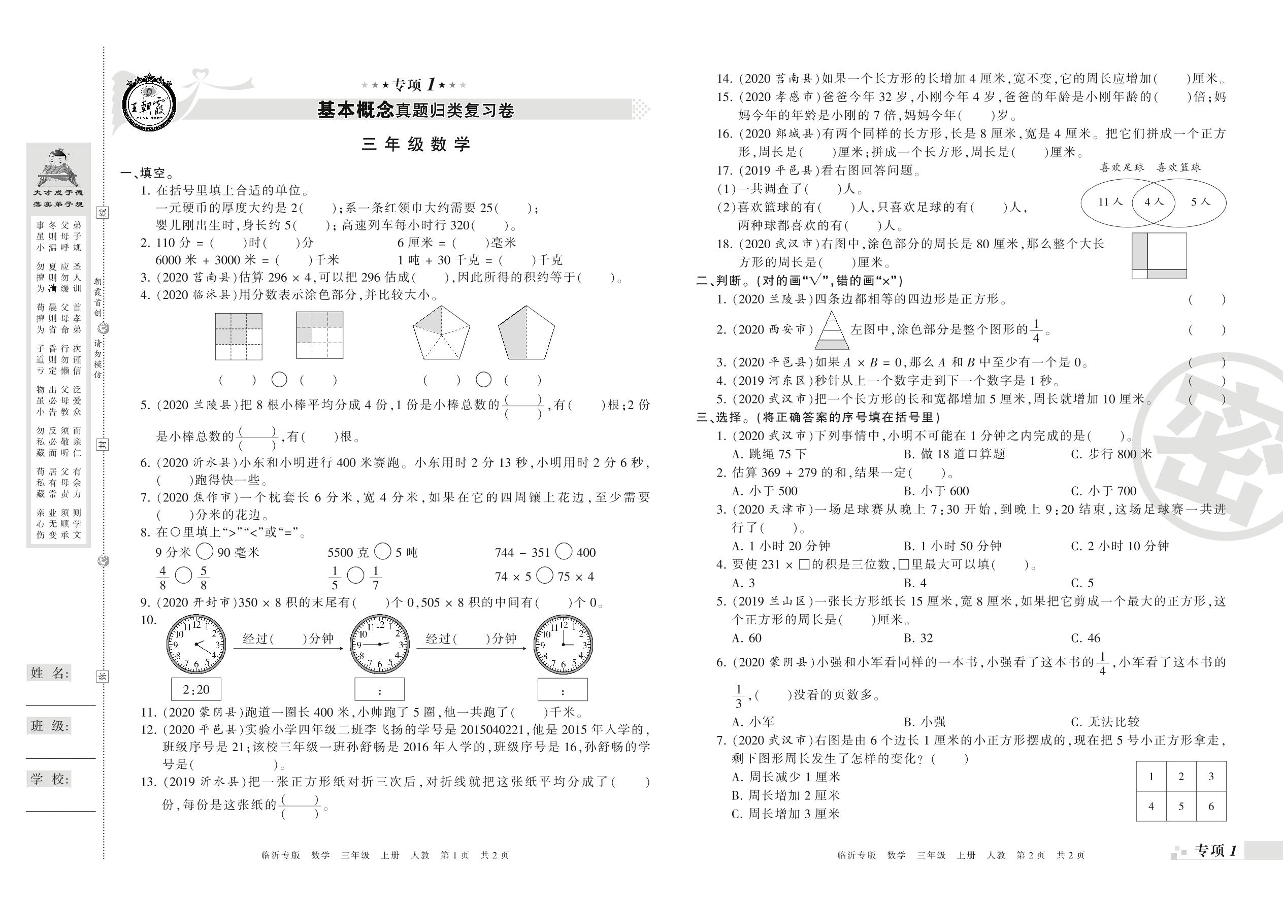 王朝霞期末专项卷——基本概念、计算真题归类复习卷三年级上册数学(人教版)【0】